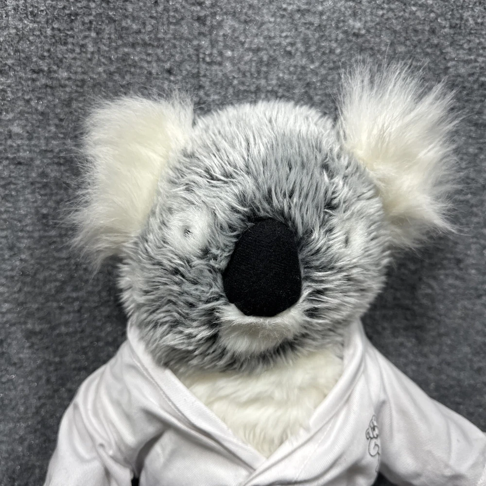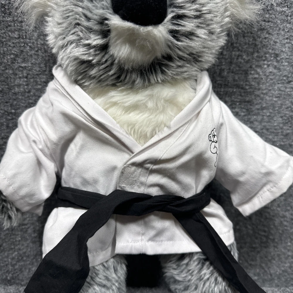 This 15-inch Build-A-Bear Workshop plush toy features a cute koala bear dressed in a karate outfit. The bear has black eyes and gray fur, and it comes with three items included: a koala hat, a karate outfit, and a pair of black boots. This original, licensed reproduction is perfect for all occasions and would make a great addition to any Build-A-Bear collection. The bear is not antique or vintage, but it is a single unit with a plush material. It is not handmade or personalized, but it features clothes and is part of the Build-a-Bear franchise. The toy was manufactured in China between 2010 and 2019 and is categorized as Dolls & Bears, Bears, Clothing & Accessories, and Bears.