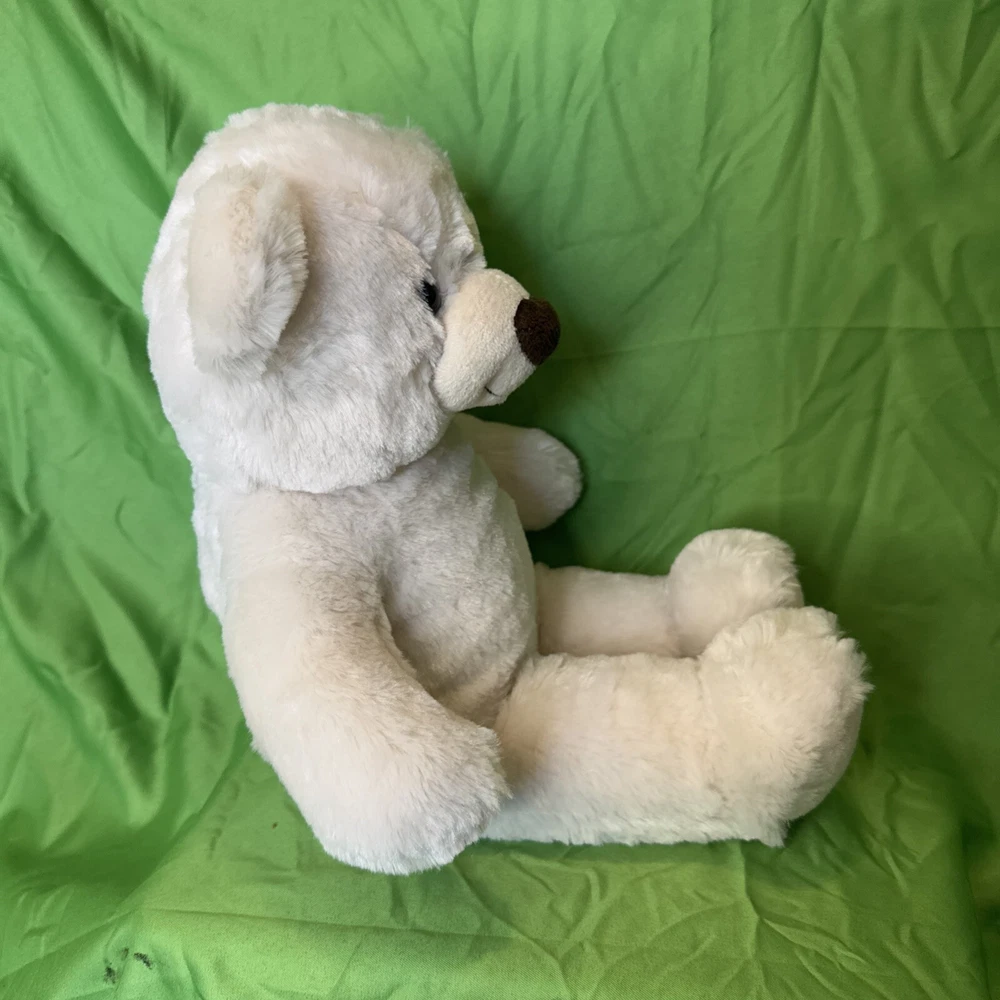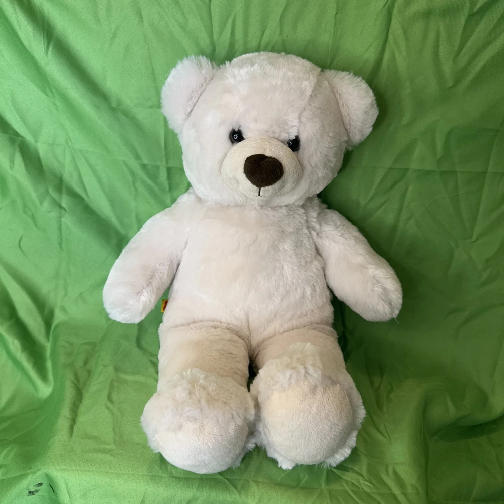 This product is a Build-a-Bear stuffed animal teddy toy doll in the color off white. It is made of plush material and is part of the Hug a Cub collection. The bear is 15 inches in size and was manufactured in 2013. It is recommended for children ages 3 and up. The bear is designed to be a toy for all occasions and features the brand's signature build-a-bear-wear clothing and accessories.