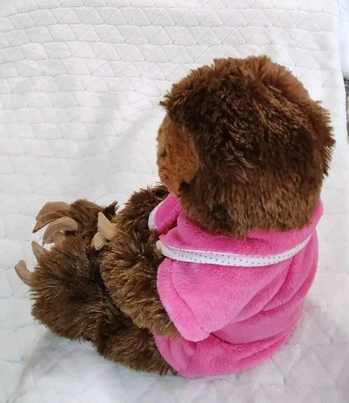 Build a Bear Sloth Brown Plush Attachable Hands & Feet 2015 w/ Pink Dot Robe