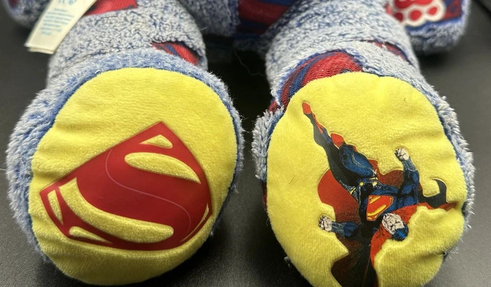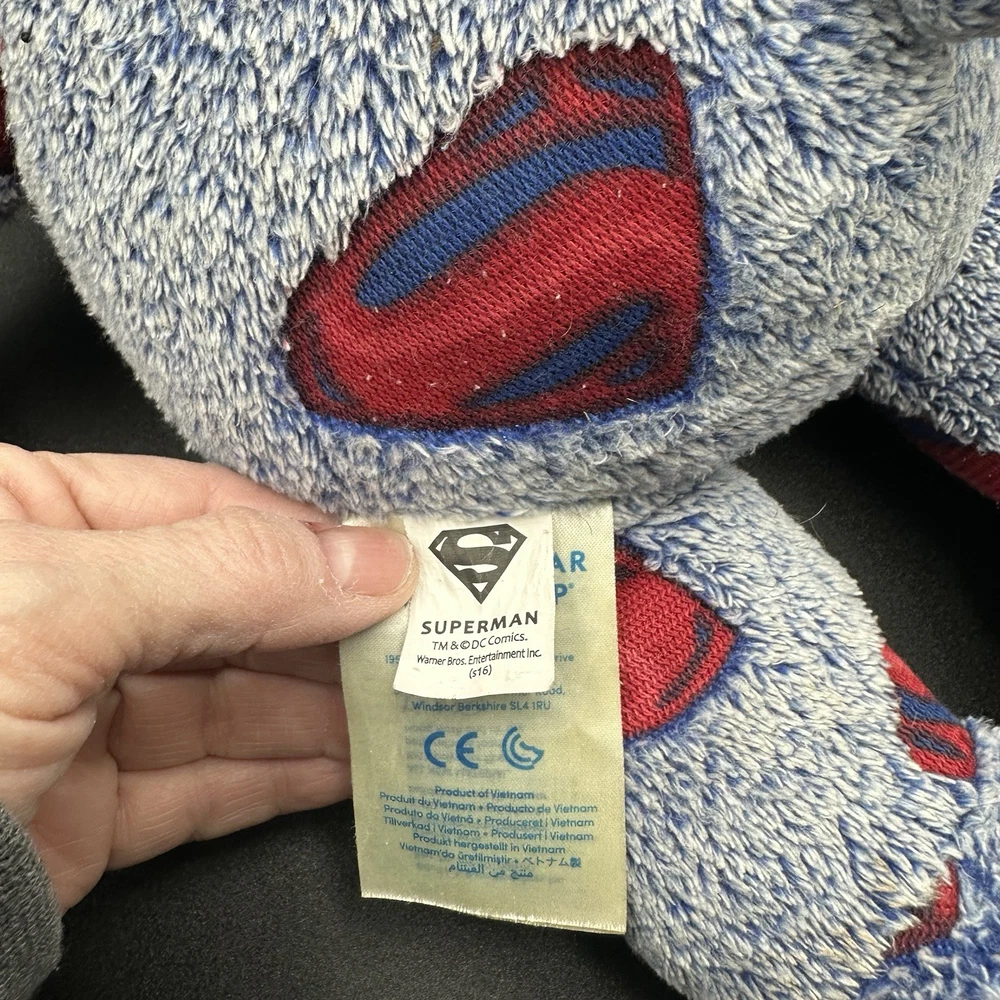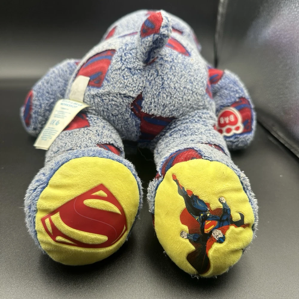Animal Species: Bear Theme: Animals Collection: D C Comics/Justice League Super Hero Type: Stuffed Animal Graphic Paws on Yellow: Yellow Inside Ears Occasion: All Occasion Item Height: 18 in Brand: Build-A-Bear Workshop Item Width: 10 in Recommended Age Range: 3+ Original/Licensed Reproduction: Original UPC: Does not apply Features: Retired gtin13: Does not apply Country/Region of Manufacture: Vietnam Animal: Super Man Bear Color: Blue+White Mix Fur Look Size: 18 in