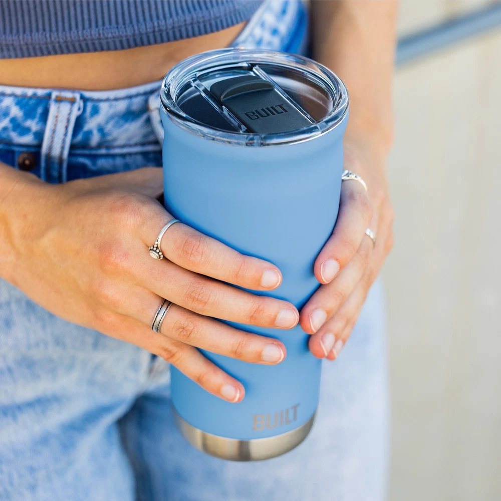 Enjoy all kinds of drinks with the 20 oz Torrent Insulated Tumbler in Sky Blue. The double-wall, vacuum-sealed construction keeps drinks cold for 24 hours, or hot for 6 hours, and prevents condensation from forming on the exterior. The lid features a large opening that accommodates straws, and the base features a nonslip rubber pad that protects surfaces from rings or scratches. This reusable, durable tumbler is made from food and lead safety tested, PVC-free, and BPA-free stainless steel that stands up to daily use. Plus, it fits in most standard-sized cup holders for easy on-the-go use. Holds up to 20-fluid ounces. Lid is top rack dishwasher safe; body is hand wash only. SMART DESIGN: lid features a large opening for straws; nonslip rubber pad on the bottom protects surfaces from rings or scratches DURABLE AND SAFE: food and lead safety tested, PVC-free, and BPA-free stainless steel stands up to daily use EASY CARE: lid is top rack dishwasher safe; body is hand wash recommended Fits in most standard car cup holders Torrent Double Wall Stainless Steel Insulated Tumbler 20 oz Magenta, Water Bottle, 5303562