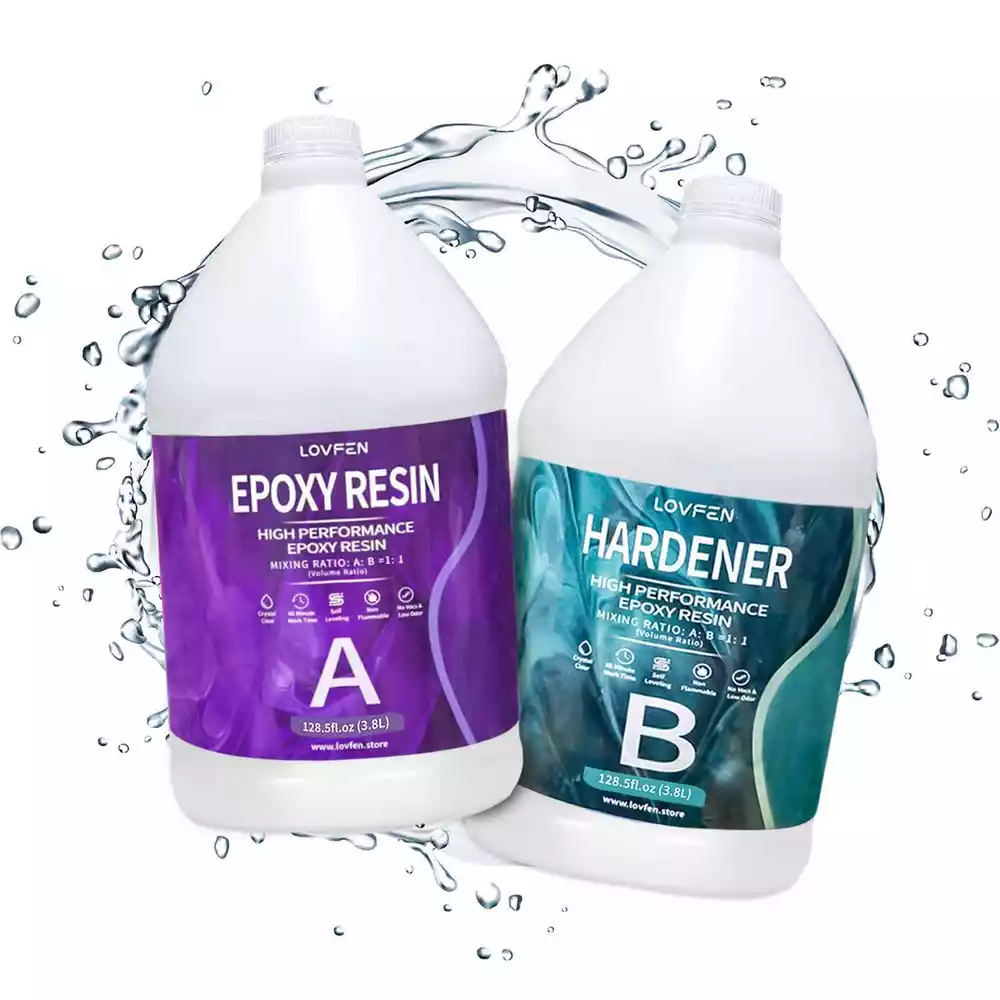 Features: Mix Ratio...............1:1 by volume Work time ..............45-60 minutes Hardness....................D70-80 after full cure Mixed Viscosity..........2500-3500cps. Chemical Resistance.......excellent Moisture Resistance........excellent FDA Compliant / Food grade: Yes, in its inert fully cured state Heat resistance: up to 80℃ (please don't leave hot pans on it,a coaster needed) Approximate Coverage: 12 square ft per gallon at 1/8 inch thickness Perfect for tabletops, fiberglass work, small castings (under 1.2" /3CM), electrical potting, jewelry making, concrete - pebble coating, marine applications- boat building This product is not intended for outdoor use. The resin 1:1 mix ratio by volume , 2 Gallon kit is volume 2 Gallon mixed, is the total volume 2 Gallon kit : 1 Gallon resin A + 1 Gallon hardener B (Total 2 Gallons) Package contains : 2X 2 Gallons kit Excellence is a tool at your side with our high-performance table top Epoxy Resin. provides a smooth yet sturdy crystal-clear finish, maintained integrity over sharp corners, and excellent air release properties, ideal for numerous home decor and art-related projects. Its finely tuned self-leveling properties for building furnishings like epoxy resin tables, bars, and countertops. Other popular epoxy table creations include handcrafted river tables and live edge tables. Whether you’re an expert or just starting your resin journey, we will help you achieve gorgeous results and inspire your next project. This product is not intended for outdoor use. Features : Mix Ratio...............1:1 by volume Work time ..............45-60 minutes Hardness....................D70-80 after full cure Mixed Viscosity..........2500-3500cps. Chemical Resistance.......excellent Moisture Resistance........excellent FDA Compliant / Food grade: Yes, in its inert fully cured state Heat resistance: up to 80℃ (please don't leave hot pans on it,a coaster needed) Approximate Coverage: 12 square ft per gallon at 1/8 inch thickness Perfect for tabletops, fiberglass work, small castings (under 1.2" /3CM), electrical potting, jewelry making, concrete - pebble coating, marine applications- boat building, & wood water proofing - repairs. Tips for operation This product is 1:1 fast cure resin, each time mixed, pour No more than 150ml total, (that is 75ml A + 75ml B, A must be ≥ B), with a thickness range of ≤1.2" to avoid bursting. and you can go as deep as you like, just make sure to work in stages. stay under 1.2" per pour. after the surface film cures begin your second pour. the surface set time is roughly 1 hour at room temp. the full cure time is 8-12 hours in summer and 12-24 hours in winter Operation steps 1:1 ratio for A&B glue by volume (A can be 2-5% more than B to make harder) Pour into the mixing cup Along the cup wall and bottom stir it evenly for 1-2 minutes Add glitter or pigmentand if you need Slowly pour mixed resindown the mold Add other decorative Payment Shipping details Return policy About us Contact us Payment We accept Paypal,Google Pay,VISA,Master Card,American Express and Discover. Shipping details We usually ship from US within 1-3 business days with tracking number by USPS or UPS. Return policy 30 days returns. Seller pays for return shipping. About us We are a trustworthy and professional eBay seller. Contact us If any problems about our product and service,contact us for free at any time via eBay messages. Brand LOVFEN Color Clear Handmade Yes Total Capacity 4 Gallons Total Kit including 1 Gallon epoxy resin A + 1 Gallon hardener B A:B Ratio 1:1 (volume ratio)