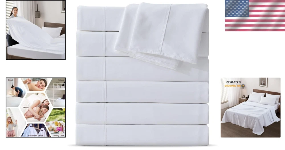 Bulk King Flat Sheets - Premium 6-Pack Soft Microfiber, Shrink & Fade Resistant ‹ › ‹ › ‹ › ‹ › ‹ › ‹ › ‹ › ‹ › ‹ › ‹ › ‹ › Bulk King Flat Sheets - Premium 6-Pack Soft Microfiber Transform your space with our exquisite set of King Size Flat Sheets. This premium 6-pack combines luxurious comfort with incredible versatility, designed for those who appreciate the finer things in life. Product Features: Generous Dimensions: Each king size flat sheet measures 105 by 102 inches, making them perfect for any bed. Stylish Design: Elegantly hemmed with clean lines, these sheets boast a refined look that enhances any bedroom decor. Luxurious Fabric: Crafted from light microfiber, these sheets provide an exceptionally soft touch—delivering supreme comfort for a restful night's sleep. Versatile Usage: Not just for your bedroom; use them as tablecloths, curtains, or even as backdrops for events and decorations. Durable Quality: Made from 100% microfiber that is shrink and fade resistant; known for its longevity and vibrant color retention. Safe and Certified: Certified by STANDARD 100 by OEKO-TEX, ensuring a healthy and safe sleeping environment. Care Instructions: Machine washable in cold water. Tumble dry on low heat for effortless maintenance. Use only non-chlorine bleach and gentle cycles for durability. Why Choose Our Premium Flat Sheets? Indulge in the perfect blend of elegance and function with our Bulk King Flat Sheets. Ideal for both personal use and hospitality settings, they offer unmatched comfort and style. The lightweight microfiber fabric wraps you in softness, making it an irresistible addition to your home essentials. Choose quality, versatility, and elegance—experience relaxation and sophistication every time you slip into bed. Reimagine your living space—order your set of Bulk King Flat Sheets today and redefine comfort with a touch of luxury! Shipping Free & Fast Shipping - We offer free shipping to most of the USA with a normal delivery time of 3-7 days. However, due to the current situation, additional delivery time (up to 3 weeks) may be required for some items. Alternative Carriers - We may use alternative carriers (e.g. USPS, FedEx, UPS, etc.) to ensure your package arrives safely and on time. Due to the use of multiple carriers, we are unable to provide a tracking number automatically. Handling Time - Orders are processed and shipped within 1-2 business days of receiving cleared payment. Shipping Restrictions - Shipping to Alaska, Hawaii, Puerto Rico, Guam, and other US territories may incur shipping charges or delivery restrictions. Please contact us before ordering, or your order can be refunded/cancelled. State Restrictions - There may be restrictions based on your state of purchase. For example, certain items may not be shipped to California due to state regulations. Contact for Tracking Updates - If you require tracking updates or have any concerns about the delivery of your order, please feel free to contact us, and we will be happy to assist you. Return 30-Day Hassle-Free Returns - We want you to be completely satisfied with your purchase. If you are not, you can return the item within 30 days of receiving it for a full refund or exchange. Easy Return Process - To start a return, simply contact us and we will provide you with a prepaid return shipping label and detailed instructions. Restocking Fee - There are no restocking fees for returns. However, the buyer is responsible for return shipping costs if the return is not due to a seller's error. Refund Processing Time - Refunds will be processed within 5 business days of receiving the returned item in its original condition. Payment We accept all major credit cards, PayPal, and Apple Pay for your convenience. Your payment information is secure and encrypted to ensure a safe and seamless transaction. Please complete your payment within 3 days of purchase to avoid any delays in shipping. Feedback Your feedback is extremely important to us. We strive to provide the best products and customer service possible. If you are satisfied with your purchase, please take a moment to leave us a positive review. If you have any concerns or issues with your order, please contact us before leaving negative feedback. We are committed to resolving any problems and ensuring your satisfaction. Contact Us If you have any questions or concerns, please feel free to reach out to our customer support team. You can contact us through the eBay messaging system. We are available Monday to Friday, 9:00 am to 5:00 pm EST, and we will do our best to respond to your inquiry within 24 hours. Buy it now and enjoy a pleasant shopping experience! UPC: Not Set Item Length: Not Set Item Width: Not Set Unit Quantity: 6 Material: Microfiber Character: Not Set Theme: Not Set Care Instructions: Machine Wash,Tumble Dry Features: Breathable,Anti-Shrinkage,Non-Fading Department: Unisex Baby & Toddler,Kids,Teens,Adults Room: Bedroom Labels & Certifications: Not Set Brand: Unbranded Size: King Type: Flat Sheet Color: White Pattern: Solid Character Family: Not Set MPN: Not Set Country/Region of Manufacture: Not Set Thread Count: 1800 Style: Modern Shape: Rectangular Model: Not Set GSM (Grams per Square Meter): Over 800 Product Line: Not Set Unit Type: lb
