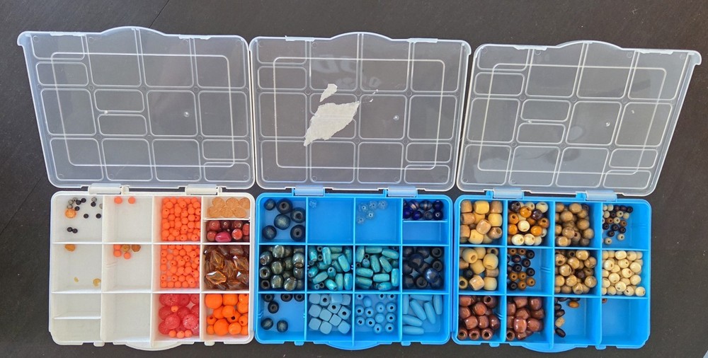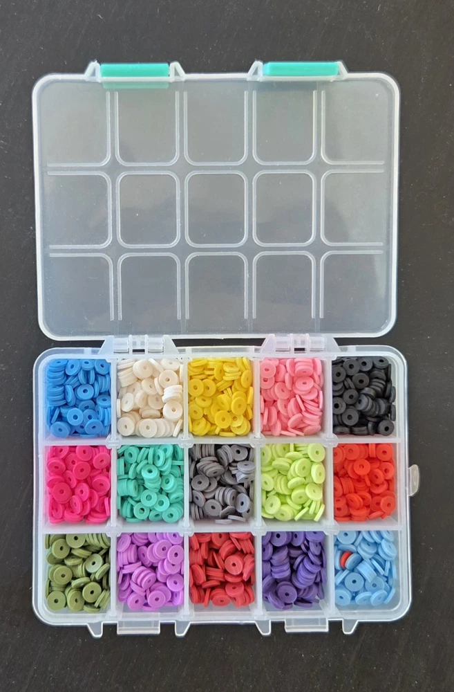 Dive into the world of creativity with our diverse lot of beads and jewelry making supplies. Each pack contains an array of round and differently sized beads in an assortment of vibrant hues, ensuring a wide range of design possibilities for your crafting projects. Crafted from durable plastic, these loose-style beads are not handmade, providing a uniform quality that's perfect for both beginners and seasoned jewelers alike. Lot includes 1 bead palette, jewelry price tags, tweezers, needles, stretch magic, thimble, bag of random beads, 2 bags of ABC beads, 3 small containers of beads, 1 container of ABC beads, 1 container of Heishi clay beads.