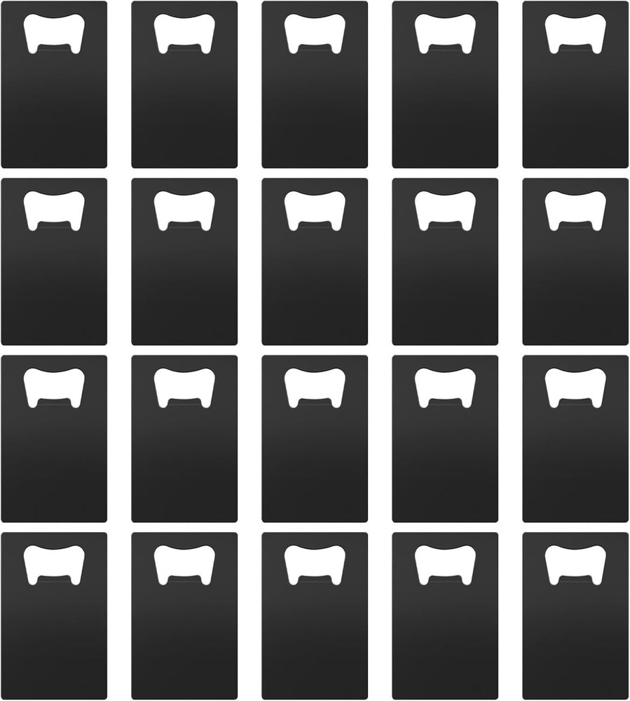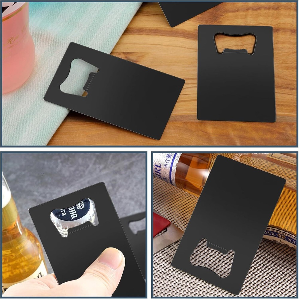 About this item [HIGH-QUALITY MATERIAL]: Our card beer openers are made of high-quality stainless steel materials, strong and firm, not easy to deform and durable. The surface is sprayed with anti-rust paint to prevent corrosion and rust and has a long service life. [CUTE SIZE]: Size: 8.5 x 5.4 cm/3.35 x 2.13 in. About 46g in weight. This lightweight and cute beer bottle opener is designed with a credit card size and is very convenient to hold, making it easy to open beer and beverage bottles. Easily stored in our wallet. [MULTI KITS]: This credit card bottle opener bulk is available in three quantity sets for you to choose from 20 PCS, 50 PCS and 100 PCS. Multi-quantity bottle opener set is ideal for restaurants, bars and homes. Can be used for various parties, camping, travel and all. [DIY HANDMADE]: Perfect for crafting DIY bottle openers. This card beer opener can be DIY laser-engraved or stickers to dress up with various patterns and text you like to create the most unique bottle opener! [GREAT GIFT]: This metal card beer bottle opener can be applied to all kinds of beer, red wine, juice and soft. As a great gift for friends and families. With a unique DIY design, perfect for wedding gifts, banquet gifts, etc.
