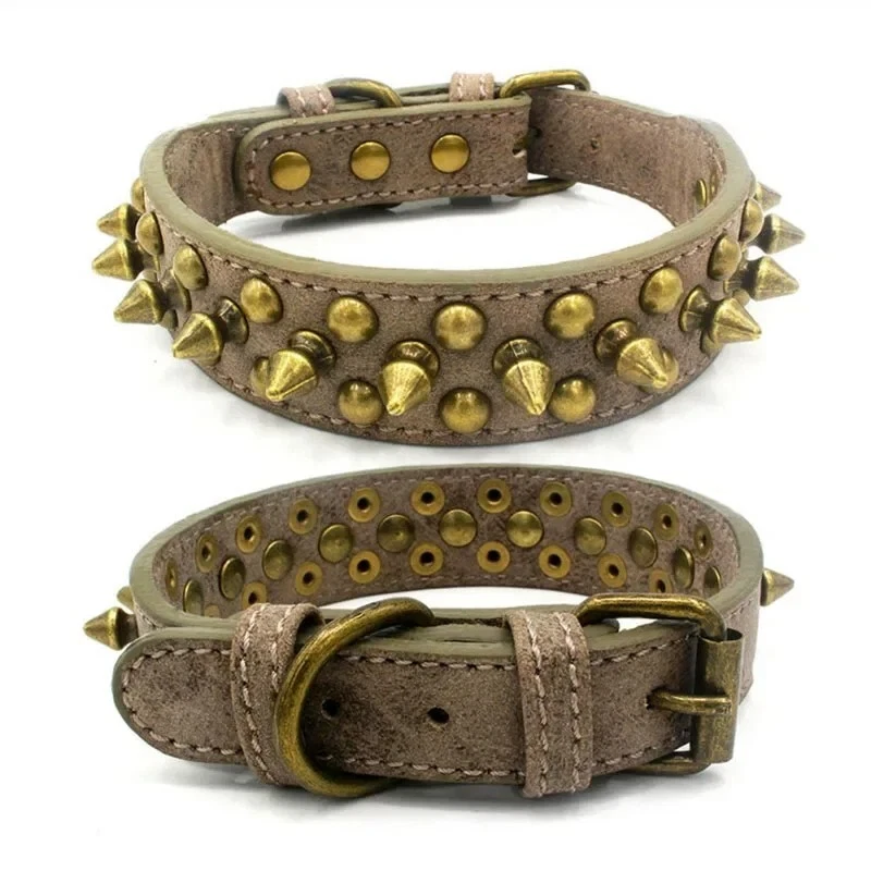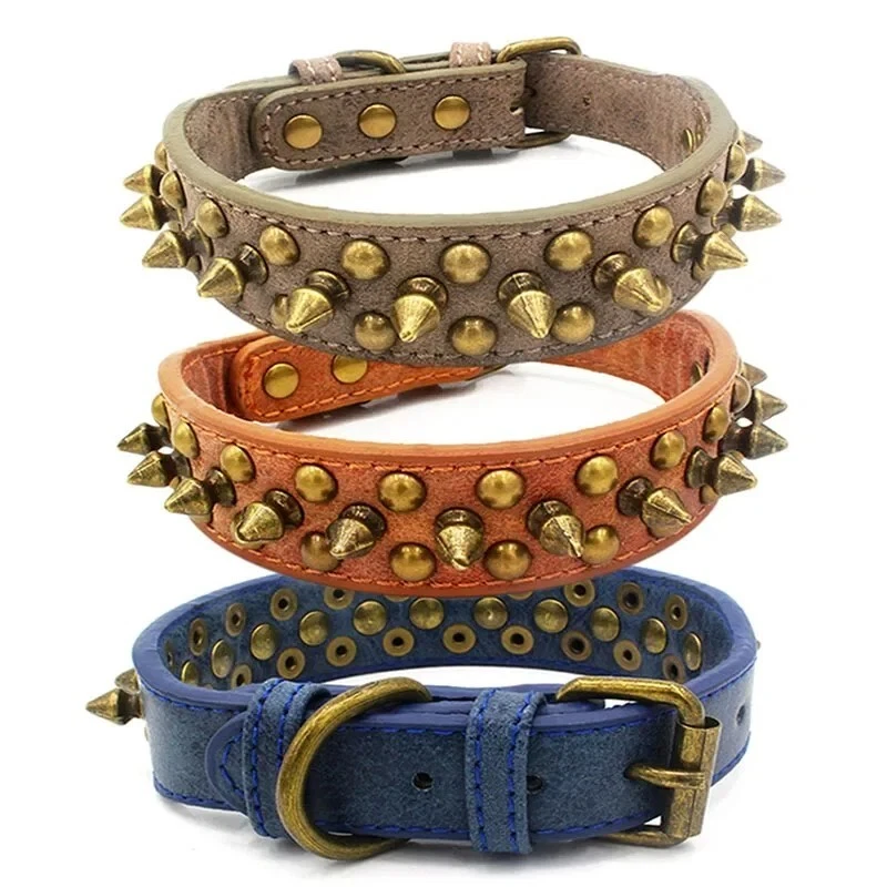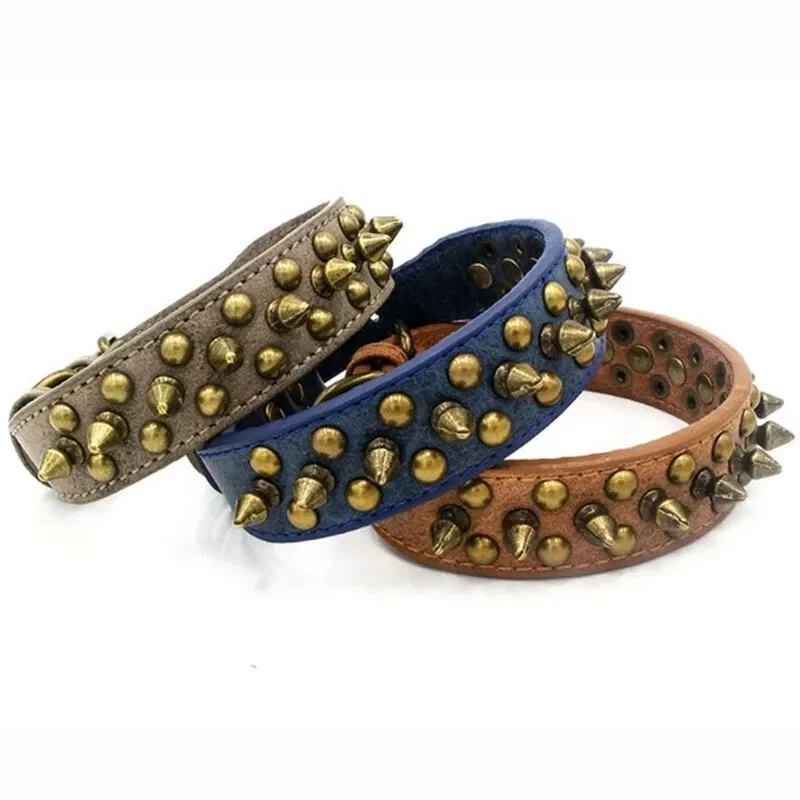 Bulldog Francés Pitbull Perros Collar Retro Cuero Tachonado Correa Cuello Perro