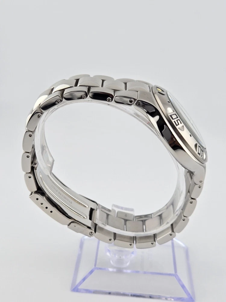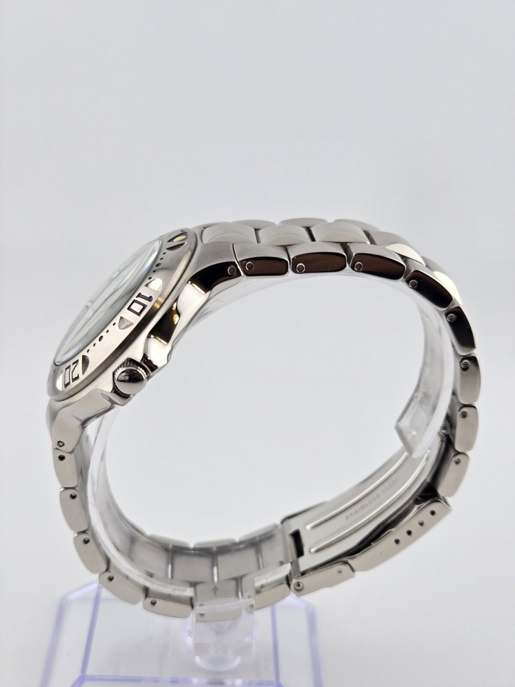 Bulova Men's Marine Star White Dial Stainless Steel Watch - 96B74 VINTAGE MODEL With Gift Box! This watch is a Shelf Pull from one of the Major Department Stores. Watch has micro scratches on the watch case/band, visible under direct light The Bulova Men's Marine Star White Dial Stainless Steel Watch (Model 96B74) is a timeless and sophisticated timepiece that seamlessly blends functionality with elegant design. Featuring a polished silver stainless steel bracelet and a matching silver bezel, this watch exudes a refined, classic look that is perfect for both everyday wear and special occasions. The bright white dial provides excellent contrast against the silver-tone markers and hands, ensuring easy readability at a glance. With its clean and minimalist aesthetic, the 96B74 brings a sense of timeless style to any outfit. Powered by a precise quartz movement, this Bulova Marine Star watch delivers reliable timekeeping with a smooth ticking seconds hand and a date function for added convenience. The durable mineral crystal glass offers protection against scratches and everyday wear, keeping the dial in pristine condition. A sturdy folding clasp ensures a secure and comfortable fit, while the stainless steel bracelet gives the watch a polished yet versatile feel, suitable for both casual and formal settings. With a water resistance of 100 meters (10 ATM), the Bulova Men's Marine Star is built to handle water activities such as swimming and snorkeling, making it both stylish and practical. Whether you're looking for a dependable daily timepiece or a polished accessory for a night out, this vintage-inspired model offers both performance and timeless appeal. Delivered in its original packaging, this Bulova watch is the perfect choice for those seeking a high-quality, versatile timepiece that combines classic design with modern functionality. Features Model: 96B74 Series: Marine Star Bracelet: Stainless Steel Glass: Mineral, shatter-resistant Bezel: Unidirectional Movement type: Quartz (battery powered) Water protection: 10 ATM Fast and Free Shipping You're already purchasing the item. Why pay additional for shipping, especially slow shipping? We get your order shipped out within 1-business day and delivered to your doorstep as quickly as possible. Competitive Pricing With our dynamic pricing model, our prices are always competitive. Our prices are some of the lowest that you will find on the internet. Rest assured that you're getting a good deal when purchasing with us. 30-day Money Back Guarantee We are committed to making sure that you leave this transaction satisfied. If you're unhappy with the product for any reason, you may return it back for your money-back or a replacement within 30 days. No questions asked!