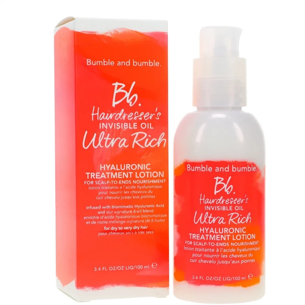 Product Description Give your hair intense hydration and silky softness with the Bumble and bumble Hairdresser’s Invisible Oil Ultra Rich Treatment. Designed for extremely dry, thick, or textured hair, this luxurious treatment delivers deep moisture, reduces frizz, and helps protect against breakage. Infused with deeply nourishing oils and butters, the formula smooths, softens, and restores manageability without weighing the hair down. It can be used as a leave-in treatment or a rinse-out conditioner, providing lasting hydration and a healthy-looking shine. This listing is for the full-size 3.4 oz bottle. Product is brand new and unused. Key Features Deeply hydrating treatment for very dry to extremely dry hair Helps soften, smooth, and reduce frizz Strengthens and protects against breakage Can be used as a leave-in or rinse-out treatment Full size: 3.4 oz Brand new – 100% authentic