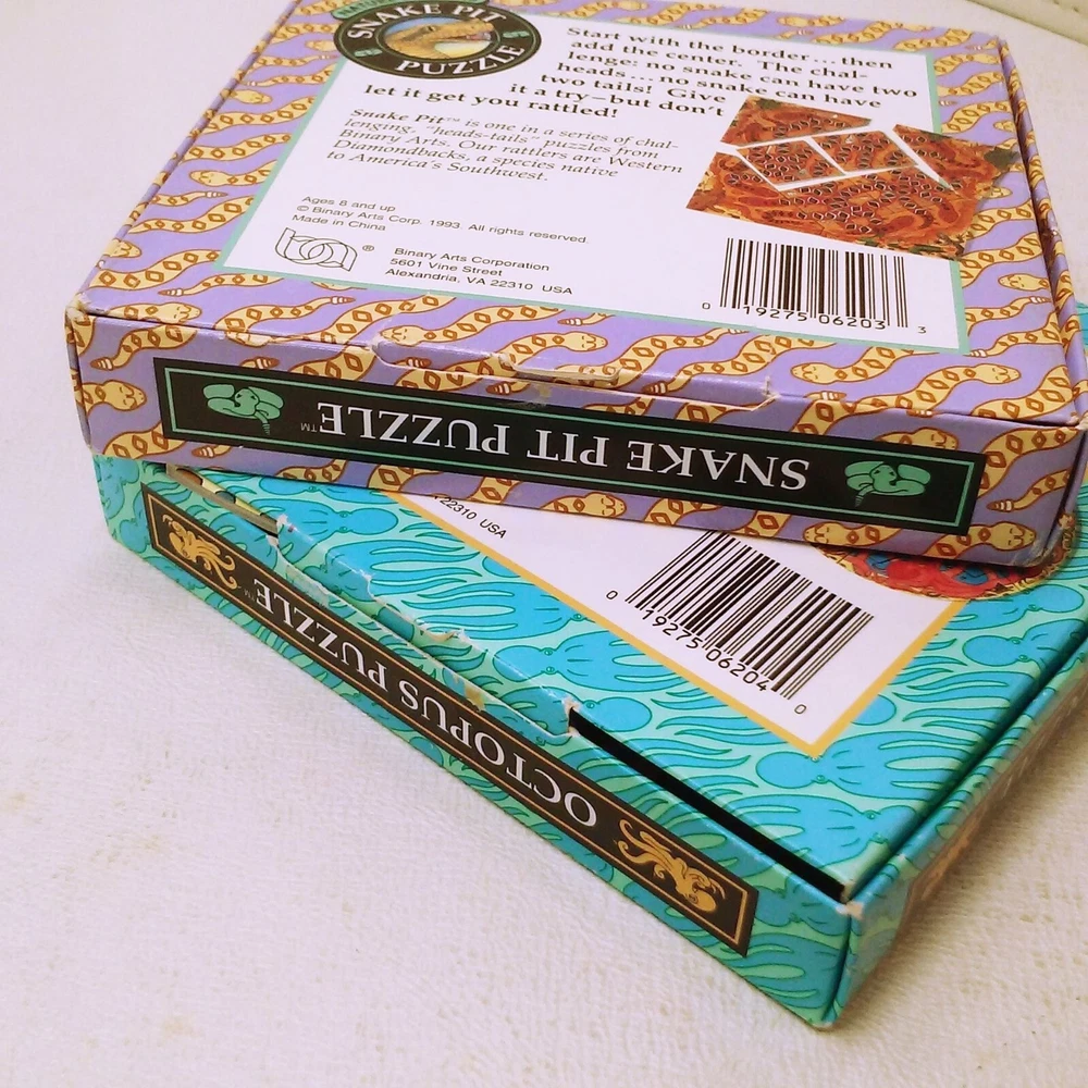 Vintage Contemporary Traditional Game Puzzle Toy | --Bundle Lot-two (2) Nature's Spaces, Snake Pit + Octopus Puzzles, Binary Arts USA, Bambi Symth 1993 Ages 8+ with 1000's of solutions In pre-owned* condition, appears used, functional, complete with no visible flaws and general wear to include: dings/blemish to outer box - see pics for details. Novelty, Interactive Family, Manufactured, Multi-players, Table CardBoard, Hobby, Collectible, Home & Family, Children Youth, Memory, Brain Teaser, Fun Games, Mystery, Strategy, Relaxation, i#msn3209 Weight: 8- oz Condition: Items are quality pre-owned*, gently loved items with unique finishes and details. Any outwardly visible flaws will be noted - refer to photos as part of description. SHIPPING: I gift package securely with wrap, padded mailers, and boxes. Shipped USPS Priority Mail or First class, depending on weight and destination of item.