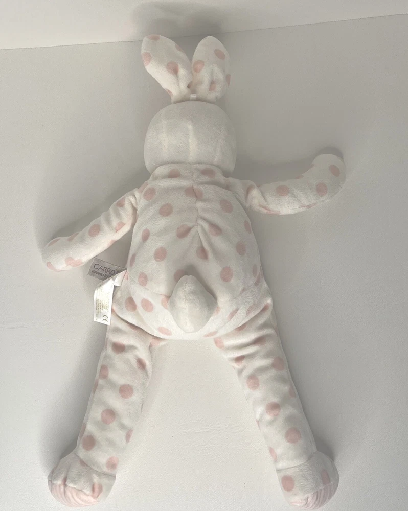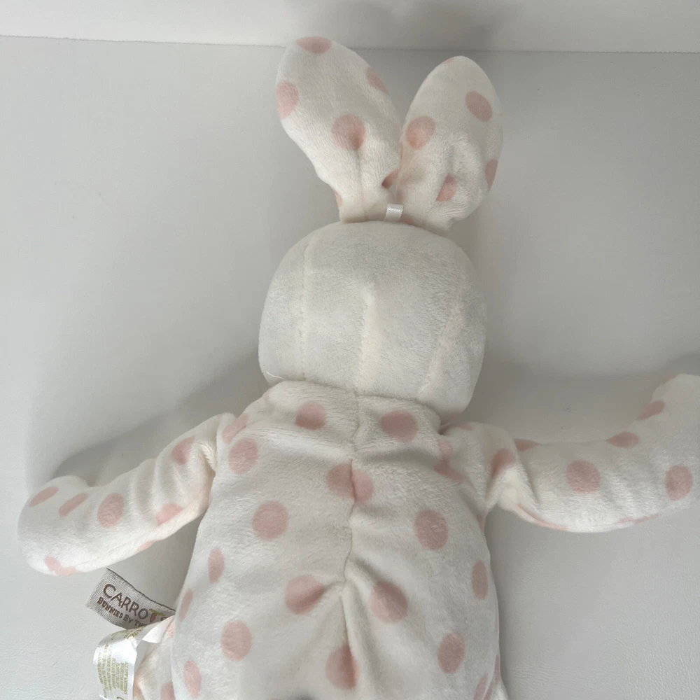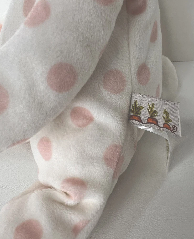 This adorable plush Bunny Rabbit Carrots is White with Pink Polka Dots is perfect for anyone looking for a soft cuddly toy. The retired plush toy from the Bunnies by the Bay brand is perfect for Easter celebrations, or just to have a cute plush toy to snuggle whenever you need one. This pink and white Bunny Rabbit plush toy is approximately 15" long from the tip of the ears to the bottom of her feet, making it a perfect size for anyone looking for something to hold. It is in very good condition. The color in the pictures is not 100% accurate due to lighting. Non-smoking household. Import duties, taxes and charges are not included in the item price or shipping charges. These charges are the buyer's responsibility. Please check with your country's customs office to determine what these additional costs will be prior to bidding/buying. These charges are normally collected by the delivering freight (shipping) company or when you pick the item up – do not confuse them for additional shipping charges. I do not mark merchandise values below winning bid amount or mark items as "gifts" - US and International government regulations prohibit this practice.