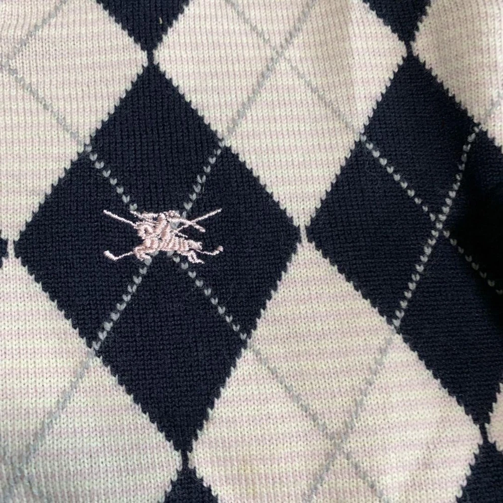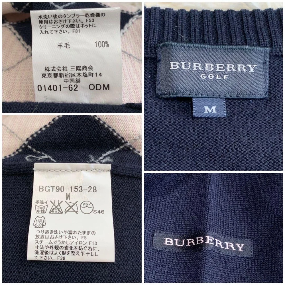Burberry Argyle Knit Sweater Wool 100 Navy Pink Size M - Excellent Condition Key Features **Burberry Argyle Knit Sweater** - **Brand:** Burberry - **Product Type:** Knit Sweater - **Color:** Navy and Pink - **Material:** 100% Wool - **Size:** - Shoulder Width: 38 cm - Chest Width: 45 cm - Sleeve Length: 55.5 cm - Length: 58 cm - **Condition:** Excellent condition with no noticeable scratches or stains. - **Authenticity:** Guaranteed authentic, certified by a reputable brand reuse store. Refund available if counterfeit. Feel free to reach out with any questions! Specifications Brand Burberry Golf Country Japan Product Description Item Title Burberry Knit Argyle Wool 100 M Payment Supports managed payments Please pay within 5 days after auction is finished. About Us We are located in Japan. It's our pleasure to make you happy by proposing our recommend item. If you have any questions or request about items, please feel free to ask us. International Buyers - Please Note: -Import duties, taxes, and charges are not included in the item price or shipping charges. These charges are the buyer's responsibility. -Please check with your country's customs office to determine what these additional costs will be prior to bidding/buying. -These charges are normally collected by the delivering freight (shipping) company or when you pick the item up - do not confuse them for additional shipping charges. -We do not mark merchandise values below value or mark items as - gifts - The US and International government regulations prohibit such behavior. Thank you for your understanding.