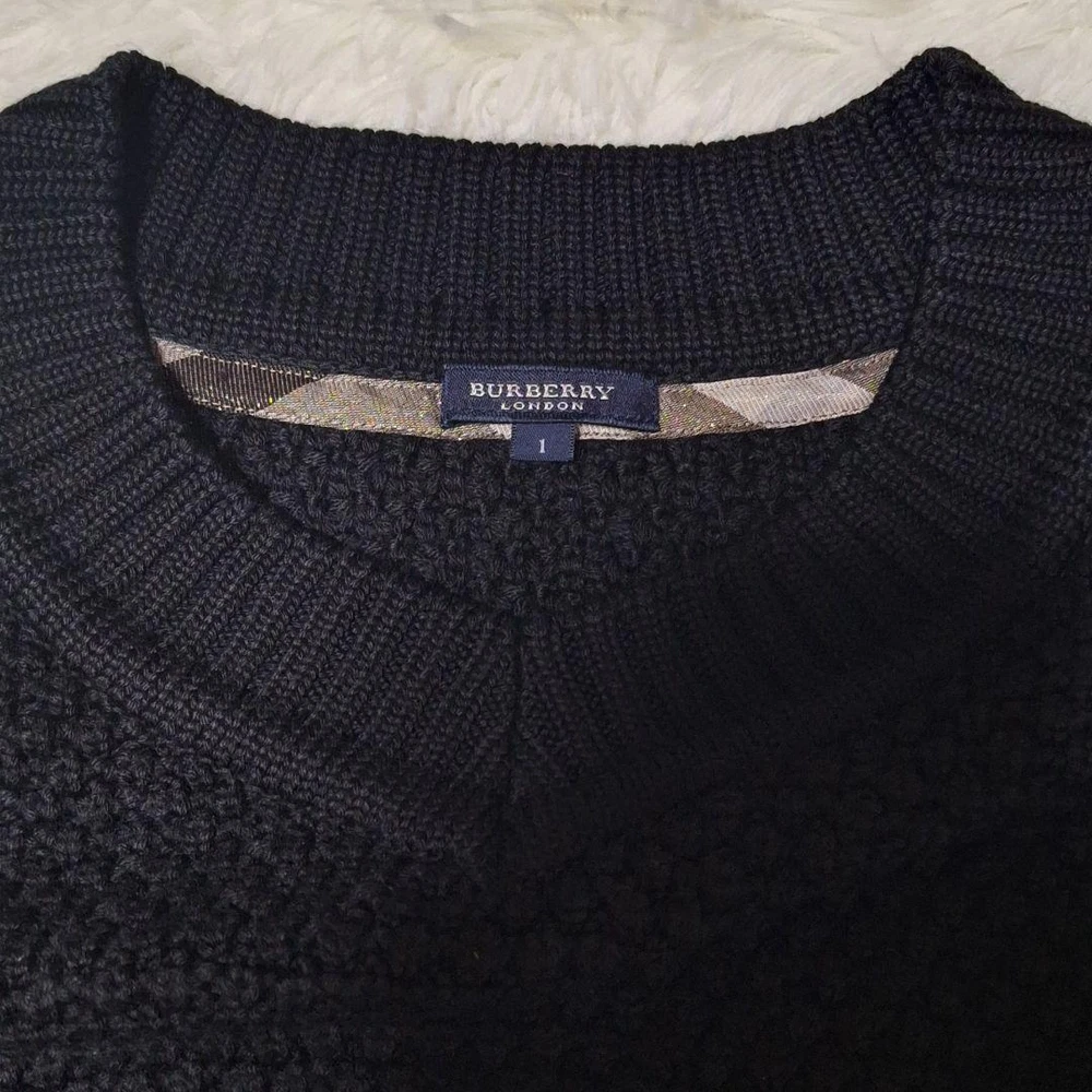 Burberry Black Cable Knit Sweater Nova Check Size 1 Used Key Features **BURBERRY London Knit Sweater** - **Brand Name:** BURBERRY London - **Product Type:** Knit Sweater - **Color:** Black - **Size:** 1 - **Material:** - Main: 80% Wool, 20% Silk - Nova Check: 95% Cotton, 5% Nylon - **Measurements:** - Shoulder Width: 34 cm - Chest Width: 47 cm - Sleeve Length: 62 cm - Length: 63 cm - **Condition:** Used, purchased from a brand reuse store, with minor signs of wear. - **Features:** - Logo plate - Check pattern - Cable knit design Discover quality used items at affordable prices with TAROandHANAKO. Find your favorite today! Specifications Brand Burberry London Country Japan Product Description Item Title Burberry Cable Knit Sweater Black Nova Check Payment Supports managed payments Please pay within 5 days after auction is finished. About Us We are located in Japan. It's our pleasure to make you happy by proposing our recommend item. If you have any questions or request about items, please feel free to ask us. International Buyers - Please Note: -Import duties, taxes, and charges are not included in the item price or shipping charges. These charges are the buyer's responsibility. -Please check with your country's customs office to determine what these additional costs will be prior to bidding/buying. -These charges are normally collected by the delivering freight (shipping) company or when you pick the item up - do not confuse them for additional shipping charges. -We do not mark merchandise values below value or mark items as - gifts - The US and International government regulations prohibit such behavior. Thank you for your understanding.