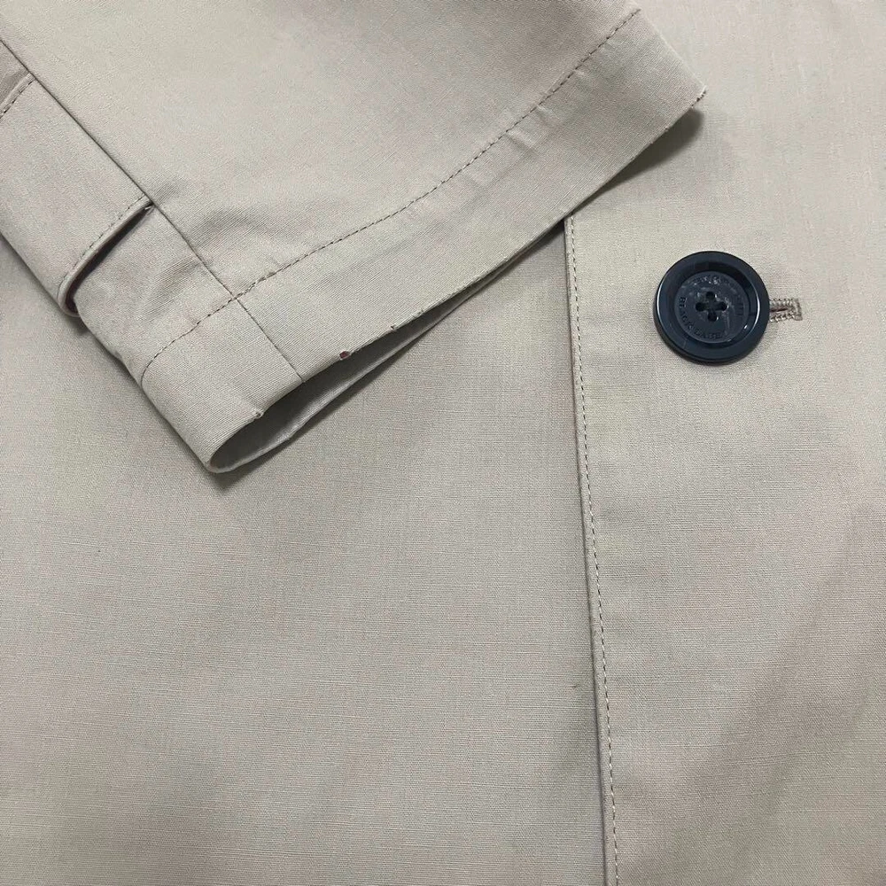 Closure: Button Performance/Activity: Walking MPN: NA Vintage: No Chest Size: 41.3 in Fit: Slim Lining Material: NA Personalize: No Product Line: NA gtin13: Does not apply Model: NA Color: Beige Warmth Weight: NA Garment Care: NA Occasion: Business, Casual, Travel UPC: Does not apply Style: Trench Coat Jacket/Coat Length: 33 in Theme: NA Brand: Burberry Season: Fall, Spring, Winter Insulation Material: NA Pattern: Check Handmade: No Size Type: Regular Outer Shell Material: Cotton Department: Men Accents: Button Size: M Features: Collared Fabric Type: NA Type: Coat Country/Region of Manufacture: China Collar Style: NA