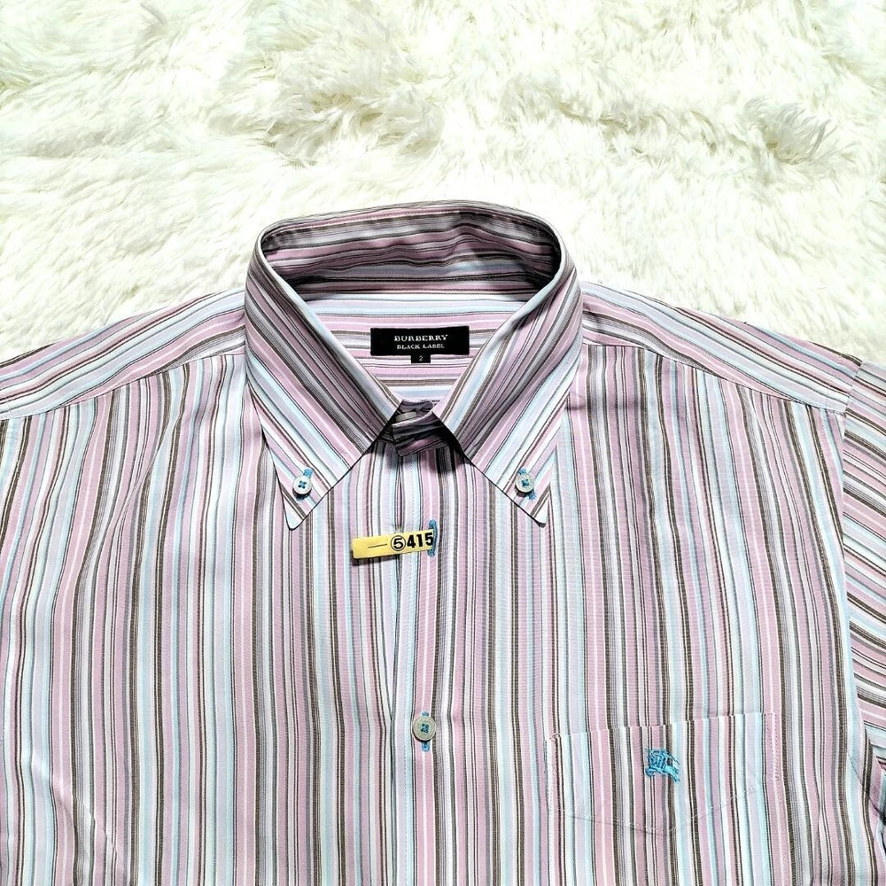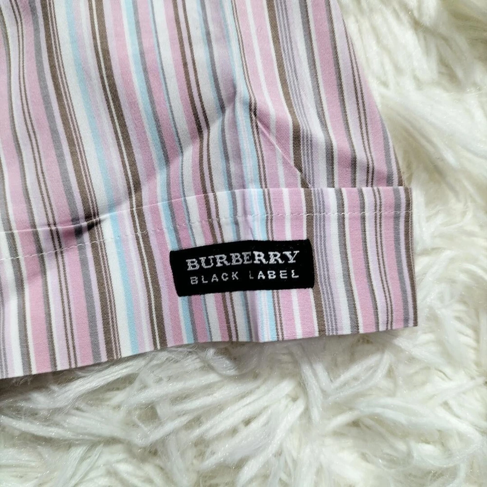 Burberry Black Label Button Shirt Striped Short sleeve Logo Men Size 2 Used