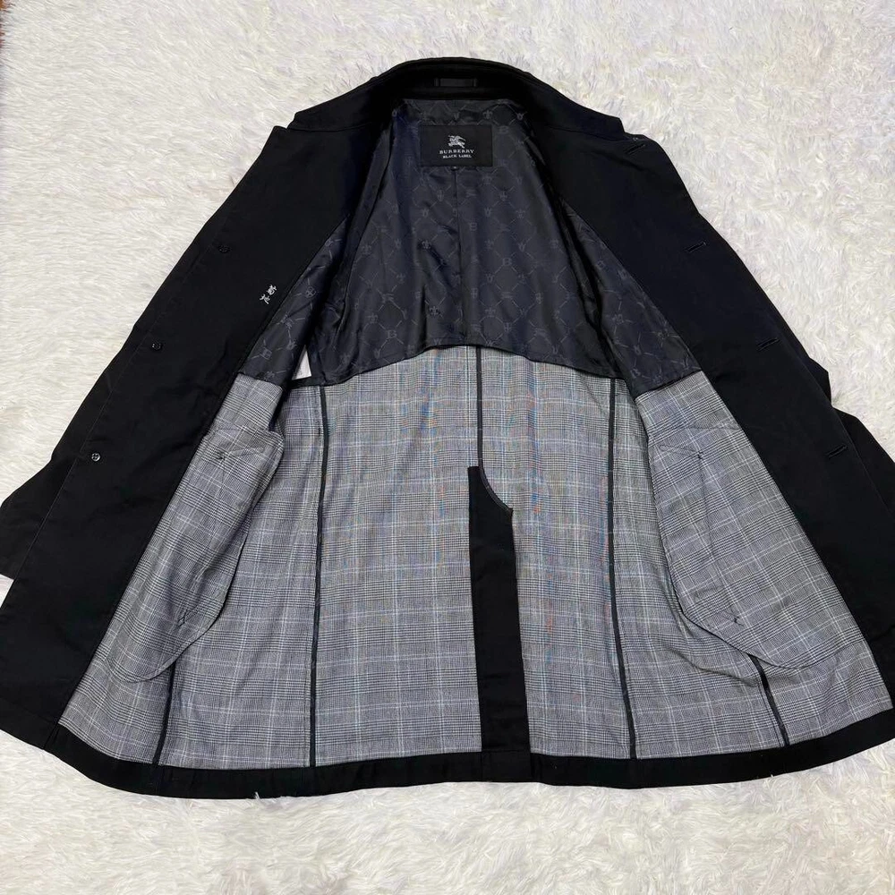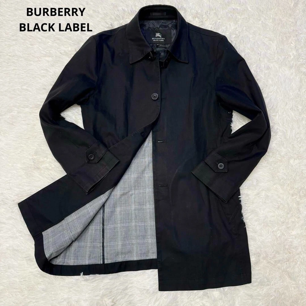 Burberry Black Label Long Coat Soutien Collar Coat Check Cotton Men Size M Used