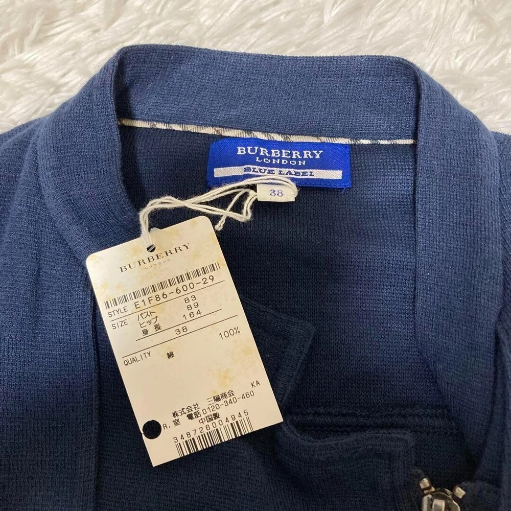 Burberry Blue Label 3/4 Sleeve Jacket Zip up Thin Navy Cotton Women Size 38 Used