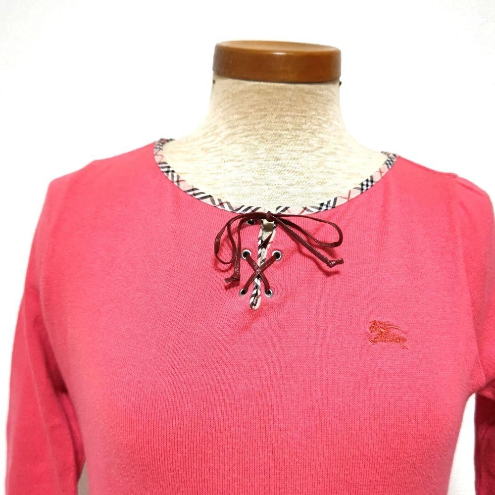 Burberry Blue Label 3/4 Sleeve Knit Cut & Sewn Sweater Pink Women Size M Used