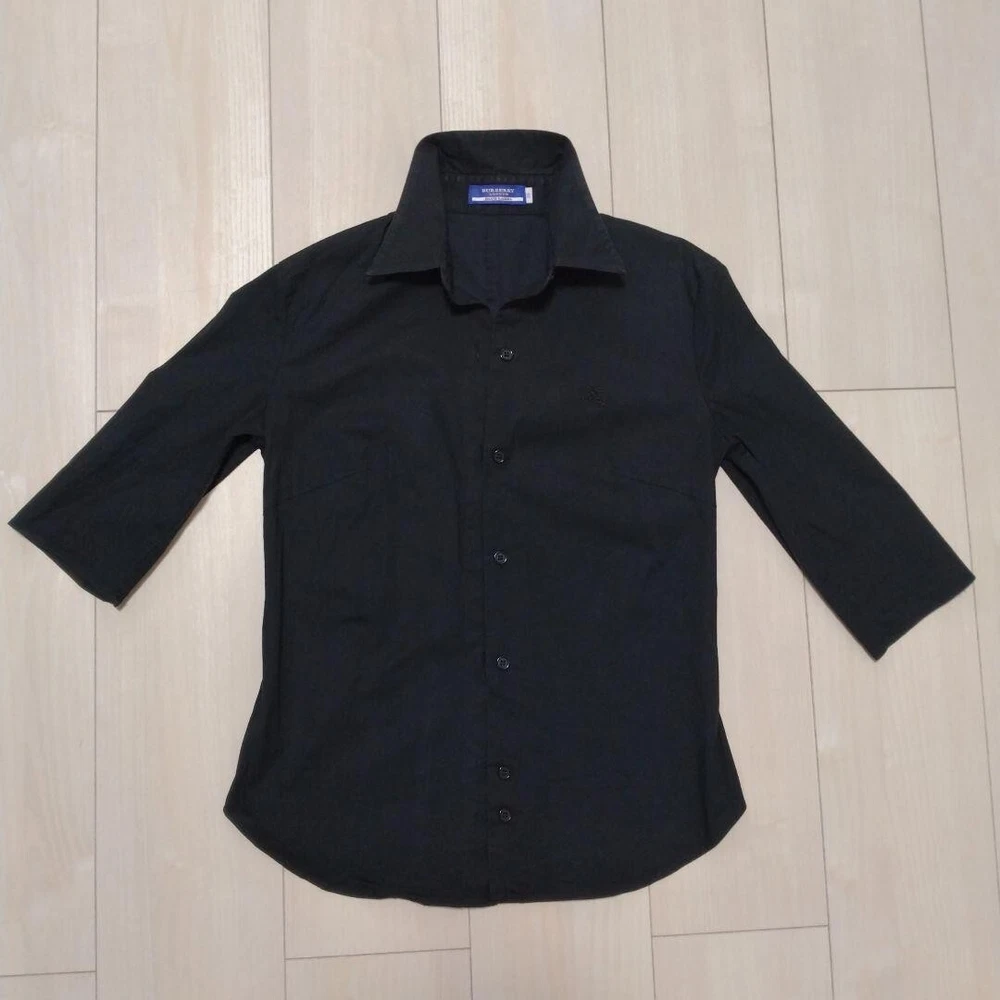 Burberry Blue Label 3/4 Sleeve Shirt Button down Black Cotton Women Size 38 Used