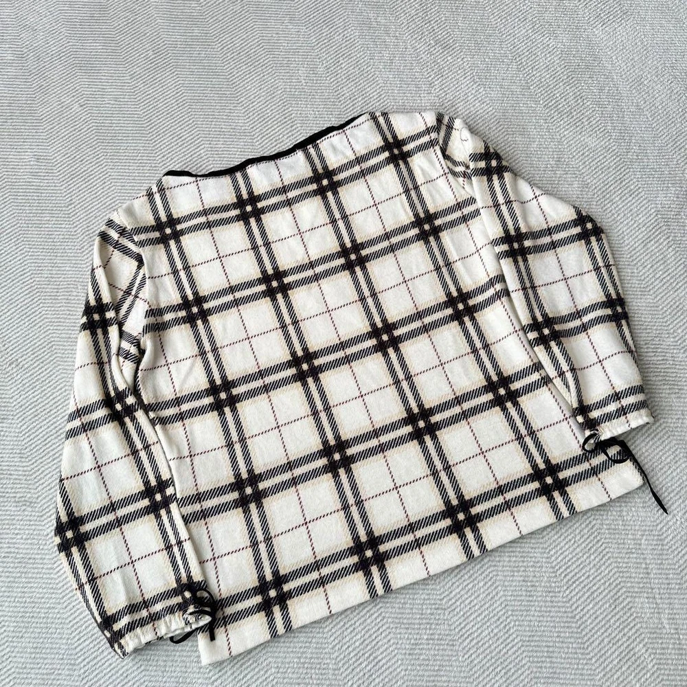 Burberry Blue Label Beige Long Sleeve Sweater with Cuff Drawcord, Size M Key Features **BURBERRY BLUE LABEL Long Sleeve Sweater** - **Brand:** Burberry Blue Label - **Product Type:** Long Sleeve Sweater - **Model:** Nova Check Pattern Sweater - **Color:** Beige - **Material:** 90% Acrylic, 10% Wool - **Size:** M - Total Length: Approximately 47 cm - Width: Approximately 39 cm - Shoulder Width: Approximately 38 cm - Sleeve Length: Approximately 42 cm - **Features:** - Iconic Nova Check pattern - Stretchable fabric for comfort - Suitable for wearing alone - Recommended for the upcoming season - **Condition:** - No stains or fraying - Very clean and well-maintained Elevate your wardrobe with this stylish and versatile Burberry Blue Label sweater, perfect for all seasons! Specifications Brand Burberry Blue Label Country Japan Product Description Item Title Burberry Blue Label Cuff Drawcord/Sweater Long Sleeve Beige M Payment Supports managed payments Please pay within 5 days after auction is finished. About Us We are located in Japan. It's our pleasure to make you happy by proposing our recommend item. If you have any questions or request about items, please feel free to ask us. International Buyers - Please Note: -Import duties, taxes, and charges are not included in the item price or shipping charges. These charges are the buyer's responsibility. -Please check with your country's customs office to determine what these additional costs will be prior to bidding/buying. -These charges are normally collected by the delivering freight (shipping) company or when you pick the item up - do not confuse them for additional shipping charges. -We do not mark merchandise values below value or mark items as - gifts - The US and International government regulations prohibit such behavior. Thank you for your understanding.