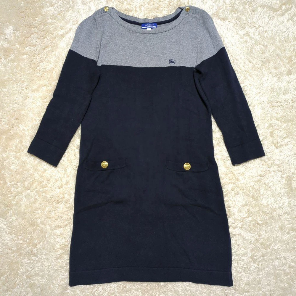 Burberry Blue Label Bicolor Knit Dress Navy/Gray Size 38 New Key Features **Burberry Blue Label Knit Dress** - **Brand:** Burberry Blue Label - **Product Type:** Knit Dress - **Size:** 38 - **Measurements:** - Length: 83 cm - Width: 42 cm - Shoulder Width: 34 cm - Sleeve Length: 49 cm - **Color:** Navy and Gray - **Material:** 100% Cotton - **Condition:** Gently used with no noticeable scratches or stains; overall in good condition. This adorable bi-color knit dress from Burberry Blue Label is made from comfortable cotton knit, making it a perfect addition to your wardrobe. Specifications Brand Burberry Blue Label Country Japan Product Description Item Title Burberry Blue Label Bicolor One Piece Navy 38 Payment Supports managed payments Please pay within 5 days after auction is finished. About Us We are located in Japan. It's our pleasure to make you happy by proposing our recommend item. If you have any questions or request about items, please feel free to ask us. International Buyers - Please Note: -Import duties, taxes, and charges are not included in the item price or shipping charges. These charges are the buyer's responsibility. -Please check with your country's customs office to determine what these additional costs will be prior to bidding/buying. -These charges are normally collected by the delivering freight (shipping) company or when you pick the item up - do not confuse them for additional shipping charges. -We do not mark merchandise values below value or mark items as - gifts - The US and International government regulations prohibit such behavior. Thank you for your understanding.