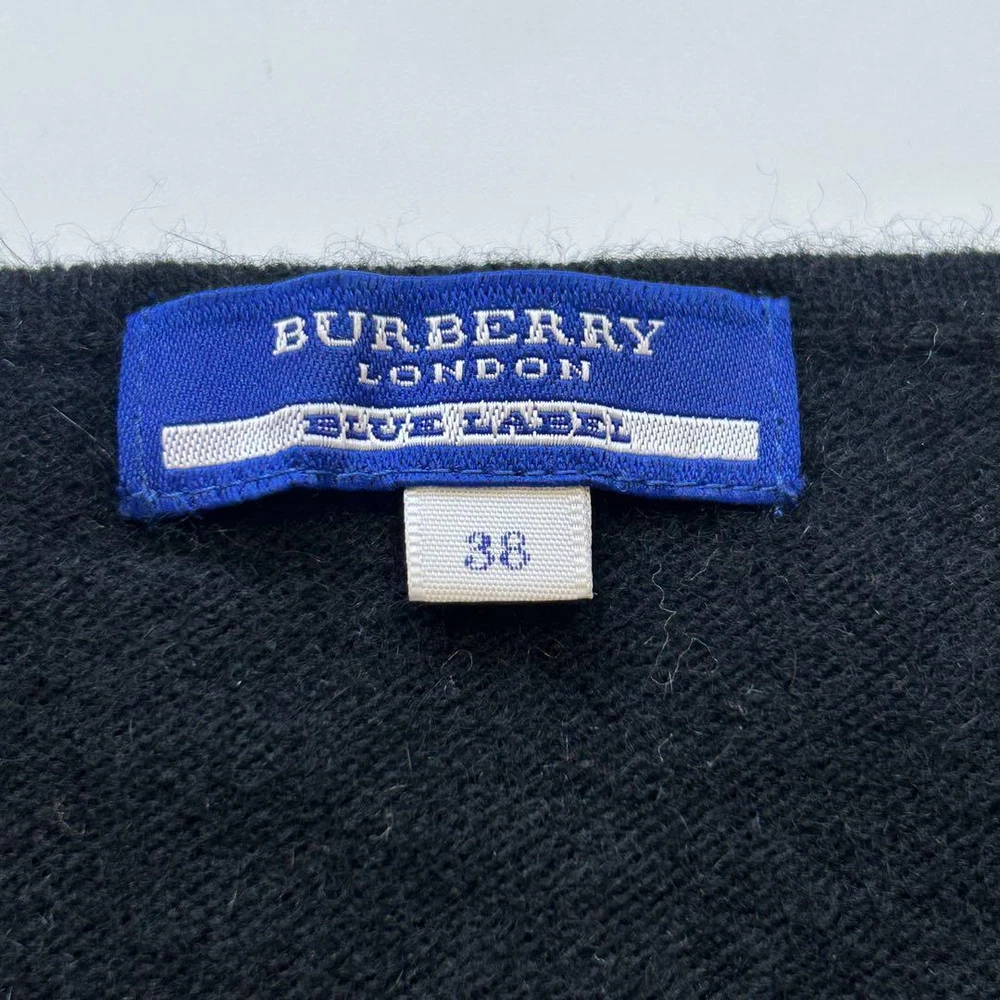 Burberry Blue Label Bijou Ribbon Cashmere Angora Cardigan - Authenticated New Key Features **Burberry BLUE LABEL Knit Cardigan Sweater** - **Brand:** Burberry BLUE LABEL - **Product Type:** Knit Cardigan Sweater - **Model:** Not specified - **Size:** 38 (M) - **Measurements:** - Length: Approximately 46 cm - Width: Approximately 45 cm - Shoulder Width: Approximately 33 cm - Sleeve Length: Approximately 46 cm - Note: Measurements are taken flat and may have slight variations. - **Color:** Black - **Material:** Cashmere - **Condition:** - Gently used with no noticeable scratches or stains. - Please note that this is a vintage item, and minor imperfections may be present. This stylish black cashmere cardigan from Burberry BLUE LABEL is perfect for the autumn and winter seasons. Enjoy the luxury of authentic fashion with confidence! Specifications Brand Burberry Blue Label Country Japan Product Description Item Title Burberry Blue Label Bijou Ribbon Cardigan Cashmere Angora Payment Supports managed payments Please pay within 5 days after auction is finished. About Us We are located in Japan. It's our pleasure to make you happy by proposing our recommend item. If you have any questions or request about items, please feel free to ask us. International Buyers - Please Note: -Import duties, taxes, and charges are not included in the item price or shipping charges. These charges are the buyer's responsibility. -Please check with your country's customs office to determine what these additional costs will be prior to bidding/buying. -These charges are normally collected by the delivering freight (shipping) company or when you pick the item up - do not confuse them for additional shipping charges. -We do not mark merchandise values below value or mark items as - gifts - The US and International government regulations prohibit such behavior. Thank you for your understanding.