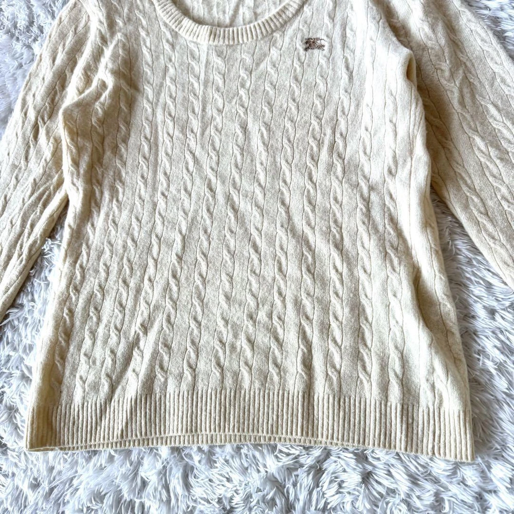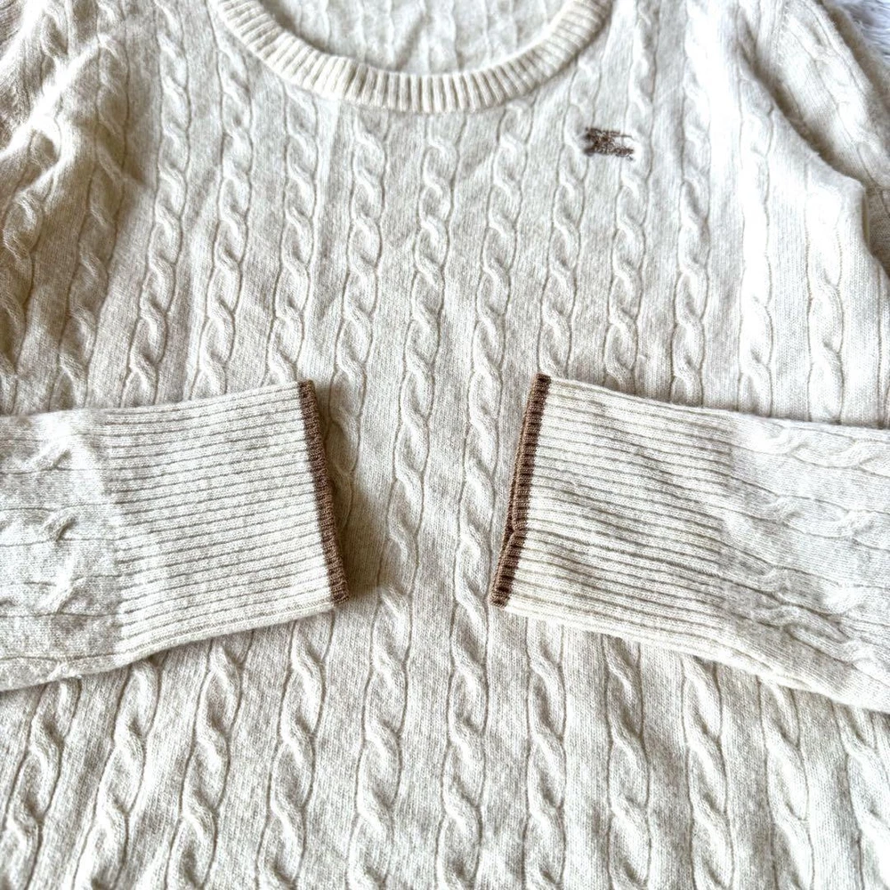 Burberry Blue Label Cable Knit Cashmere Sweater M White Beige Embroidered Logo Key Features **Burberry Blue Label Women's Cable Knit Sweater** - **Brand:** Burberry Blue Label - **Product Type:** Pullover Sweater - **Model:** Cable Knit Sweater with Horse Embroidery - **Color:** White/Beige - **Material:** 90% Wool, 10% Cashmere - **Size:** Marked size 38 (M) - **Measurements:** - Length: 51 cm - Shoulder Width: 39 cm - Chest Width: 43 cm - Sleeve Length: 58 cm - *Please note that measurements are taken by hand and may have slight variations.* - **Condition:** Excellent condition with no noticeable scratches or stains. Please refer to the photos for confirmation. - **Season:** Fall/Winter Elevate your wardrobe with this luxurious Burberry Blue Label sweater, perfect for the cooler months! Specifications Brand Burberry Blue Label Country Japan Product Description Item Title Burberry London Blue Label Cable Knit Sweater Cashmere Blend M Payment Supports managed payments Please pay within 5 days after auction is finished. About Us We are located in Japan. It's our pleasure to make you happy by proposing our recommend item. If you have any questions or request about items, please feel free to ask us. International Buyers - Please Note: -Import duties, taxes, and charges are not included in the item price or shipping charges. These charges are the buyer's responsibility. -Please check with your country's customs office to determine what these additional costs will be prior to bidding/buying. -These charges are normally collected by the delivering freight (shipping) company or when you pick the item up - do not confuse them for additional shipping charges. -We do not mark merchandise values below value or mark items as - gifts - The US and International government regulations prohibit such behavior. Thank you for your understanding.