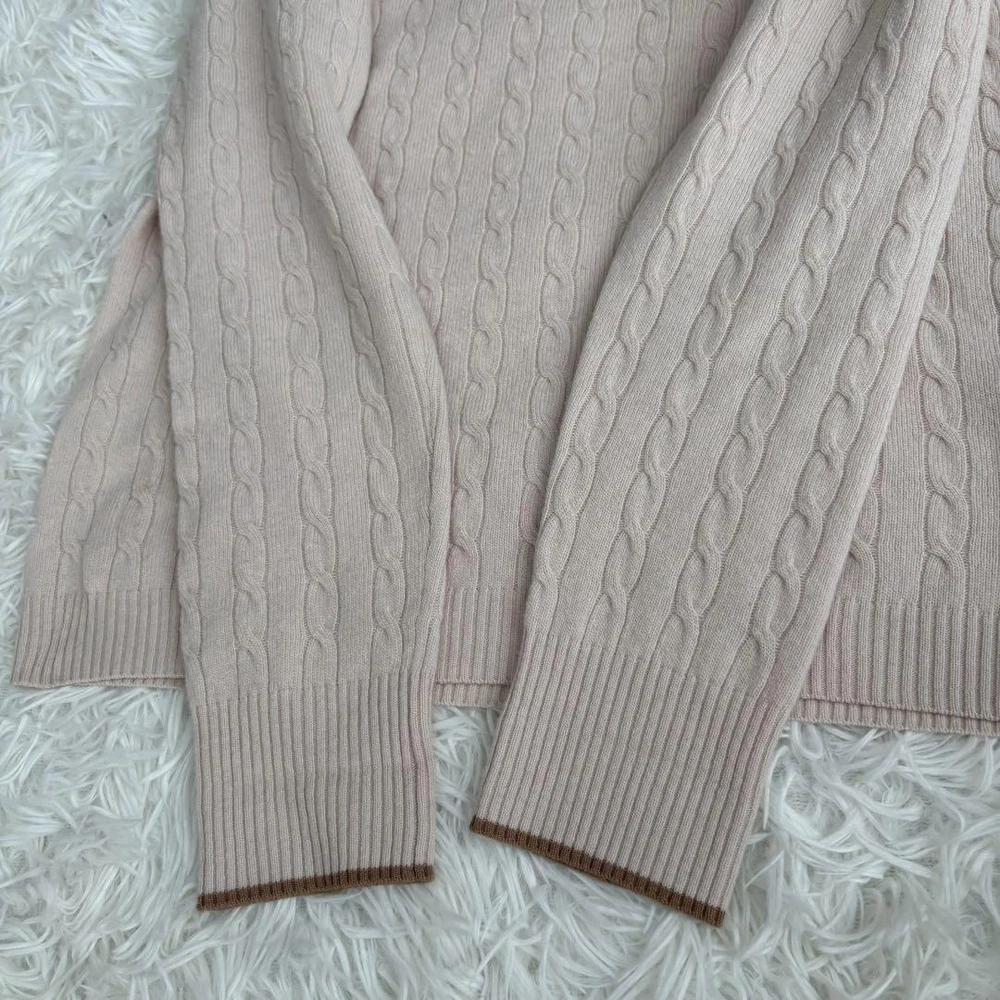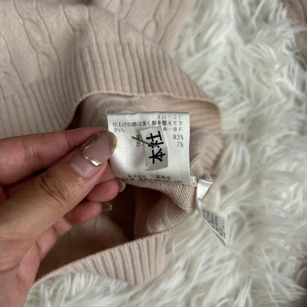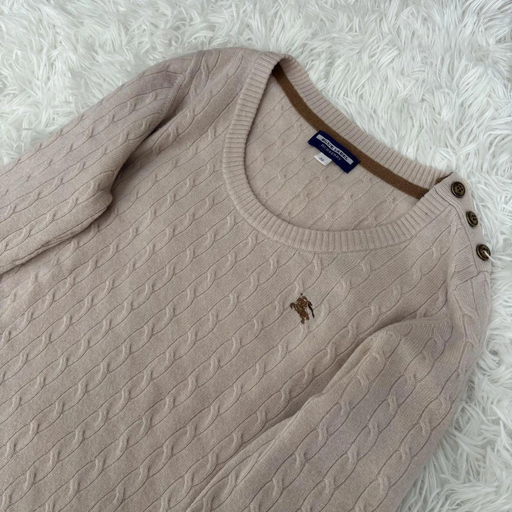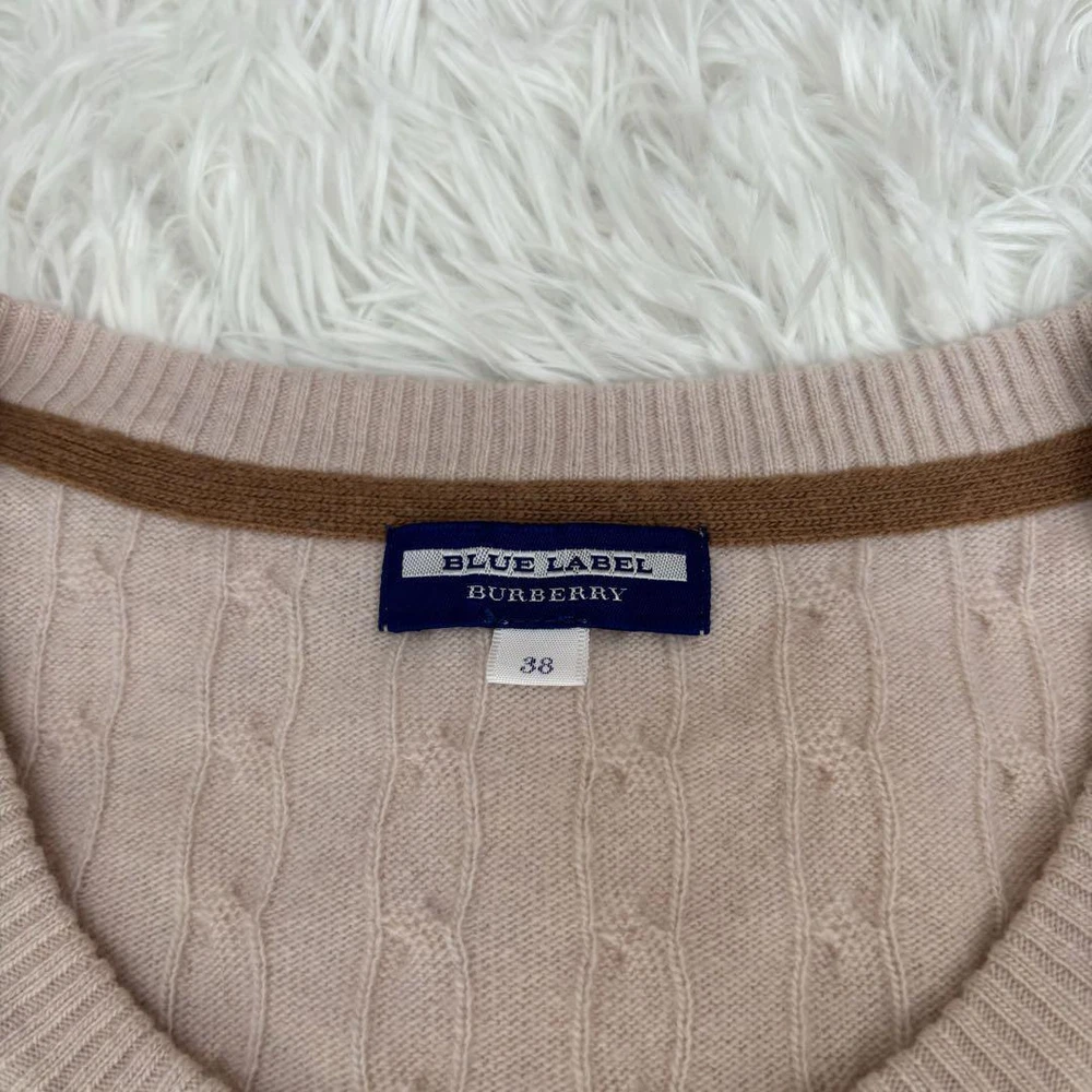Burberry Blue Label Cashmere Blend Cable Knit Long Sleeve Sweater M Key Features **Burberry Blue Label Cashmere Blend Sweater** - **Brand:** Burberry Blue Label - **Product Type:** Sweater - **Model:** Horse Logo with Gold Buttons - **Color:** Light Pink - **Material:** Cashmere and Wool - **Size:** 38 - Shoulder Width: 40 cm - Chest Width: 43 cm - Sleeve Length: 57 cm - Total Length: 58.5 cm - **Condition:** - Overall used condition with noticeable signs of wear. - No prominent scratches or stains; still plenty of life left. - **Notes:** - This item was purchased from a reputable apparel recycling shop and has been authenticated. - Please note that the actual color may slightly differ from photos, especially for colored items. - Minor folding wrinkles may occur due to compact packaging. Hangers and accessories are not included. Specifications Brand Burberry Blue Label Country Japan Product Description Item Title Cashmere Blend Burberry Blue Label Cable Knit Long Sleeve Logo M Payment Supports managed payments Please pay within 5 days after auction is finished. About Us We are located in Japan. It's our pleasure to make you happy by proposing our recommend item. If you have any questions or request about items, please feel free to ask us. International Buyers - Please Note: -Import duties, taxes, and charges are not included in the item price or shipping charges. These charges are the buyer's responsibility. -Please check with your country's customs office to determine what these additional costs will be prior to bidding/buying. -These charges are normally collected by the delivering freight (shipping) company or when you pick the item up - do not confuse them for additional shipping charges. -We do not mark merchandise values below value or mark items as - gifts - The US and International government regulations prohibit such behavior. Thank you for your understanding.