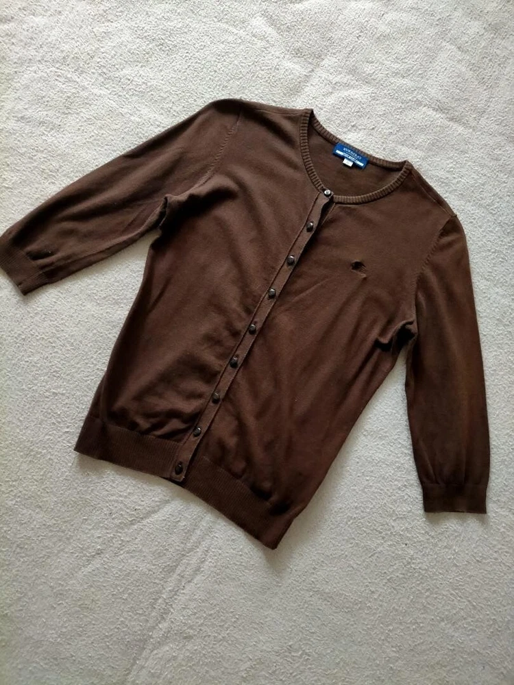 Burberry Blue Label Knit Cardigan Brown Cotton Button Women Size 38/S-M Used