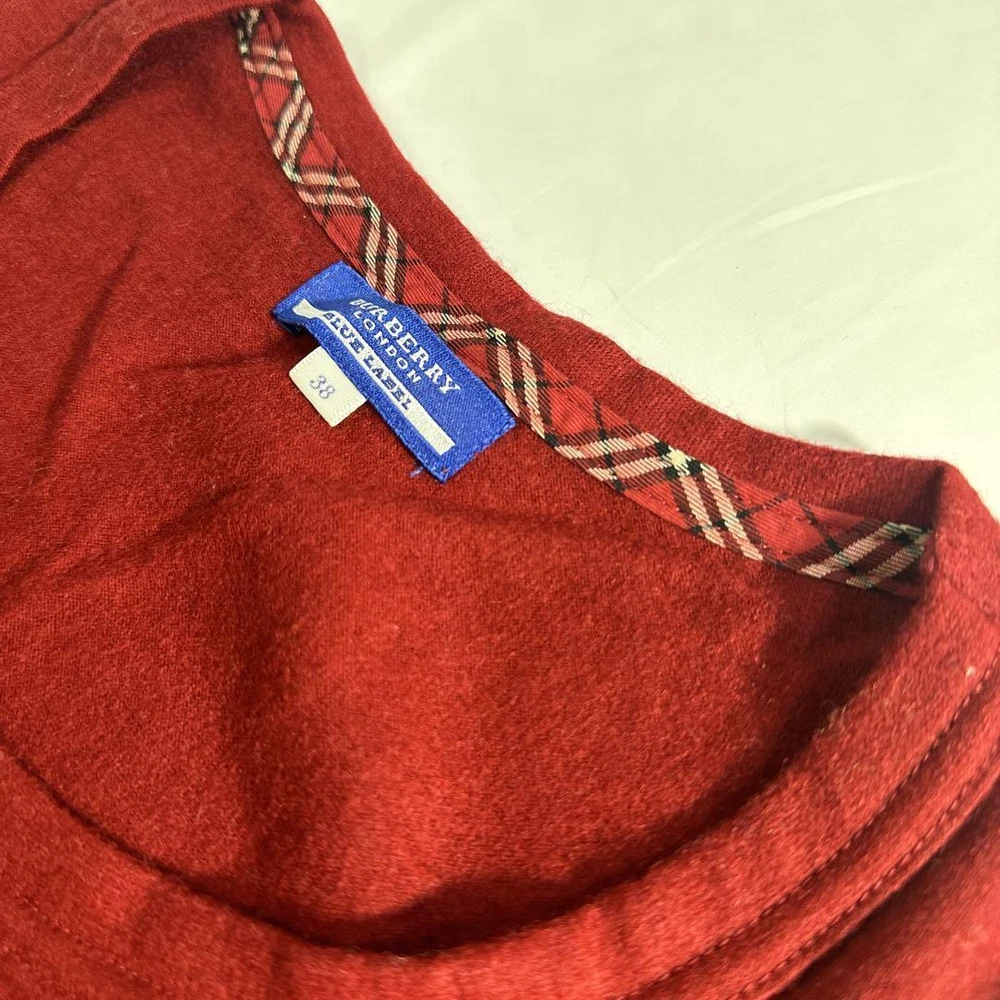 Burberry Blue Label Long Sleeve Wool Sweater T-Shirt Size 38 Excellent Condition Key Features **Burberry Blue Label Sweater** - **Brand Name:** Burberry Blue Label - **Product Type:** Long Sleeve Sweater - **Model:** Not specified - **Material:** 100% Wool - **Color:** Burgundy - **Size:** 38 - **Width:** Approximately 42 cm - **Length:** Approximately 56 cm - **Condition:** Gently used, stored in a closet for a while. Worn only a few times with no tears or pilling, in excellent condition. - **Purchase Location:** Isetan Shinjuku Store This stylish and cozy sweater is perfect for all seasons. Ideal for layering or wearing on its own, it combines luxury with comfort. Specifications Brand Burberry Blue Label Country Japan Product Description Item Title Burberry Blue Label Sweater Cut And Sewn Long T Wool 100 Payment Supports managed payments Please pay within 5 days after auction is finished. About Us We are located in Japan. It's our pleasure to make you happy by proposing our recommend item. If you have any questions or request about items, please feel free to ask us. International Buyers - Please Note: -Import duties, taxes, and charges are not included in the item price or shipping charges. These charges are the buyer's responsibility. -Please check with your country's customs office to determine what these additional costs will be prior to bidding/buying. -These charges are normally collected by the delivering freight (shipping) company or when you pick the item up - do not confuse them for additional shipping charges. -We do not mark merchandise values below value or mark items as - gifts - The US and International government regulations prohibit such behavior. Thank you for your understanding.