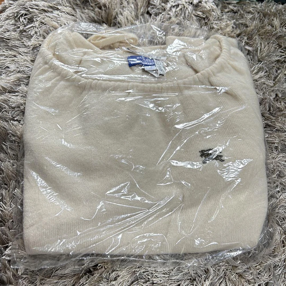 Burberry Blue Label Off White Knit Sweater Horsemark Size 38 Used Key Features **BURBERRY BLUE LABEL Knit Sweater** - **Brand:** Burberry Blue Label - **Product Type:** Knit Sweater - **Model:** Horse Mark Design - **Color:** Off-White - **Size:** Tag size 38 **Detailed Features:** - **Condition:** Gently used, worn only twice; overall good condition. - **Notable Flaw:** Small stain near the ribbon at the hem (see photo 7). - **Care:** Professionally cleaned. - **Design:** Crew neck, suitable for autumn and winter wear. - **Usage:** Minimal signs of wear, please consider this is a pre-owned item. Please review the photos for detailed design elements. Thank you for understanding the nature of used items. Specifications Brand Burberry Blue Label Country Japan Product Description Item Title Off White Burberry Blue Label Knit Payment Supports managed payments Please pay within 5 days after auction is finished. About Us We are located in Japan. It's our pleasure to make you happy by proposing our recommend item. If you have any questions or request about items, please feel free to ask us. International Buyers - Please Note: -Import duties, taxes, and charges are not included in the item price or shipping charges. These charges are the buyer's responsibility. -Please check with your country's customs office to determine what these additional costs will be prior to bidding/buying. -These charges are normally collected by the delivering freight (shipping) company or when you pick the item up - do not confuse them for additional shipping charges. -We do not mark merchandise values below value or mark items as - gifts - The US and International government regulations prohibit such behavior. Thank you for your understanding.