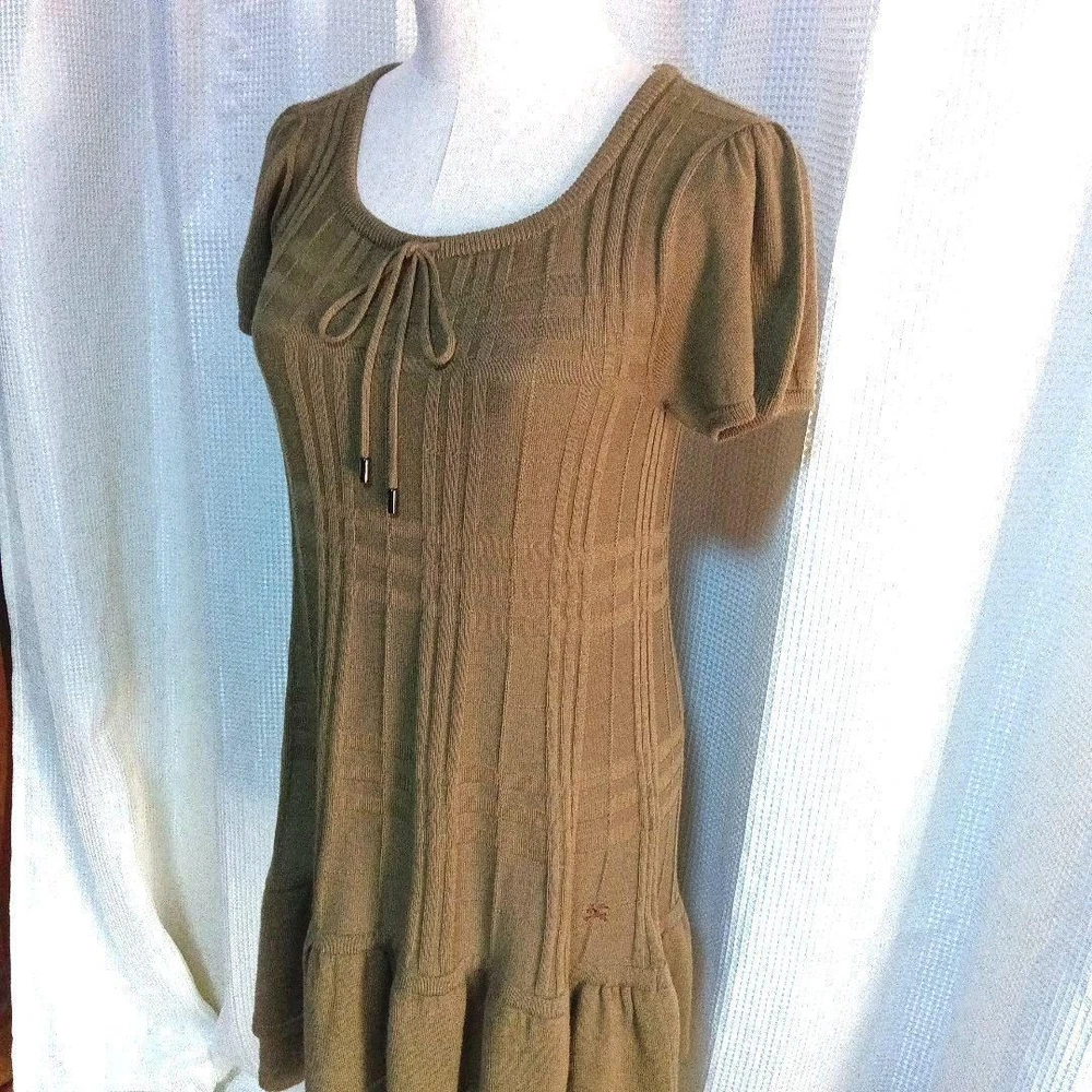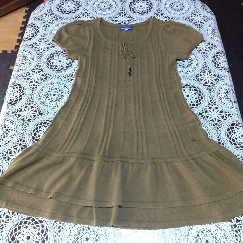 Burberry Blue Label Short Sleeve Knit Tunic Dress Size M Brown Made in Japan Key Features **Burberry Blue Label Knit Dress** - **Brand**: Burberry Blue Label - **Product Type**: Knit Dress - **Model**: Size 38 - **Color**: Brown - **Material**: 50% Cotton, 50% Acrylic - **Size Details**: - Shoulder Width: 35 cm - Bust Width: 38 cm - Waist: 39 cm - Sleeve Length: 16 cm - Length: 78 cm - **Features**: - Puff sleeves for a feminine touch - Ruffled hem for added style - Square neck design with a ribbon accent enhances the neckline - Soft knit material for comfort in all seasons - **Condition**: Gently used, worn only once for a short time, in very good condition. Cleaned and ready to wear. This stylish knit dress combines casual elegance with a flattering silhouette, perfect for various occasions Specifications Brand Burberry Blue Label Country Japan Product Description Item Title Burberry Blue Label Knit Tunic One Piece Made In Japan Short Sleeve M Payment Supports managed payments Please pay within 5 days after auction is finished. About Us We are located in Japan. It's our pleasure to make you happy by proposing our recommend item. If you have any questions or request about items, please feel free to ask us. International Buyers - Please Note: -Import duties, taxes, and charges are not included in the item price or shipping charges. These charges are the buyer's responsibility. -Please check with your country's customs office to determine what these additional costs will be prior to bidding/buying. -These charges are normally collected by the delivering freight (shipping) company or when you pick the item up - do not confuse them for additional shipping charges. -We do not mark merchandise values below value or mark items as - gifts - The US and International government regulations prohibit such behavior. Thank you for your understanding.