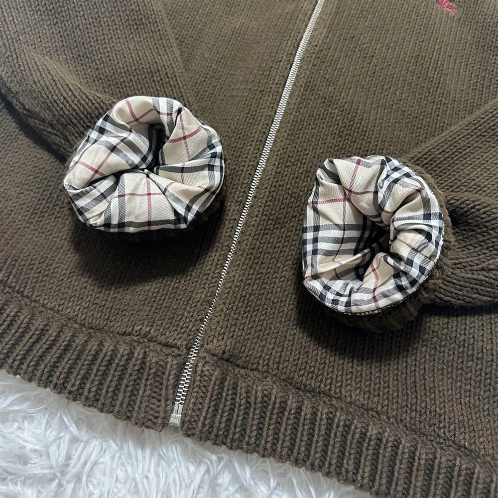 Burberry Blue Label Women's Full Zip Knit Sweater Nova Check Olive M/L Key Features **Burberry London Blue Label Full Zip Knit Sweater** - **Brand:** Burberry London Blue Label - **Product Type:** Full Zip Knit Sweater - **Model:** Logo Embroidered Nova Check - **Color:** Olive Green (Khaki) - **Size:** Women's M (fits between M and L) - **Measurements:** - Shoulder Width: 46 cm - Sleeve Length: 60 cm - Bust Width: 48 cm - Length: 65 cm - **Features:** - Trendy full zip design - Stylish olive color - Luxurious Nova Check lining visible from inside - **Condition:** Gently used, worn only 2-3 times. No stains, pilling, or damage; in excellent condition. Specifications Brand Burberry Blue Label Country Japan Product Description Item Title Kiwami Burberry Blue Label Women'S Full Zip Knit Nova Check Payment Supports managed payments Please pay within 5 days after auction is finished. About Us We are located in Japan. It's our pleasure to make you happy by proposing our recommend item. If you have any questions or request about items, please feel free to ask us. International Buyers - Please Note: -Import duties, taxes, and charges are not included in the item price or shipping charges. These charges are the buyer's responsibility. -Please check with your country's customs office to determine what these additional costs will be prior to bidding/buying. -These charges are normally collected by the delivering freight (shipping) company or when you pick the item up - do not confuse them for additional shipping charges. -We do not mark merchandise values below value or mark items as - gifts - The US and International government regulations prohibit such behavior. Thank you for your understanding.