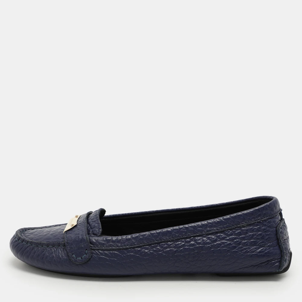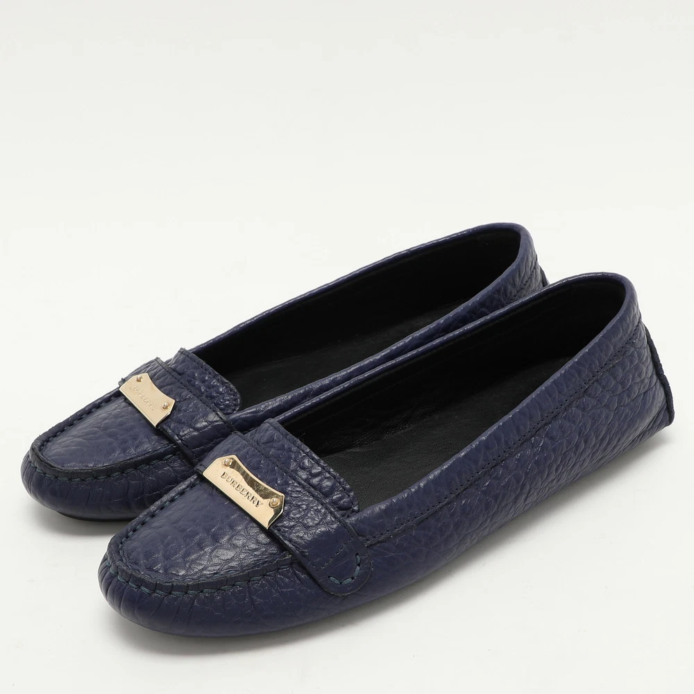 These loafers from Burberry are not only high in appeal but also very skilfully made. The leather loafers have a comfortable shape and will complement any look.Certified by The Luxury Closet - This item has gone through a detailed authentication process overseen by our experts. We offer a lifetime guarantee of authenticity on all our items. Import duties, taxes and charges are not included in the item price. These charges are the buyers responsibility. Please check with your country’s customs office to determine what these additional cost will be prior to buying. Our eBay Store About Us Contact Us Add to Favorite Sellers Burberry Blue Leather Embellished Loafers Size 37 $358.6 These loafers from Burberry are not only high in appeal but also very skilfully made. The leather loafers have a comfortable shape and will complement any look. Product Details Brand Color Blue Dimensions Material Leather Size 37 Outsole Width 8 cm Outsole Length 26 cm Heel Height Includes The Luxury Closet Packaging Certified by The Luxury Closet This item has gone through a detailed authentication process overseen by our experts. We offer a lifetime guarantee of authenticity on all our items. How We Check The in-house team of experts at The Luxury Closet is highly trained to verify the authenticity and the condition of the luxury products. They ensure that only 100% authentic items are put on sale.The evaluation process is unique with its own mix of assessment criteria and differs according to the category. Each item is evaluated based on the following combination of hallmarks, hardware, stitching, symmetry, material, craftsmanship, stamping, codes, hologram stickers, and packaging. Our authenticators also check if the items have been modified or amended (e.g., aftermarket diamonds, replaced batteries, repaired bags, etc.) International Buyers Import duties, taxes and charges are not included in the item price. These charges are the buyers responsibility. Please check with your country’s customs office to determine what these additional cost will be prior to buying.