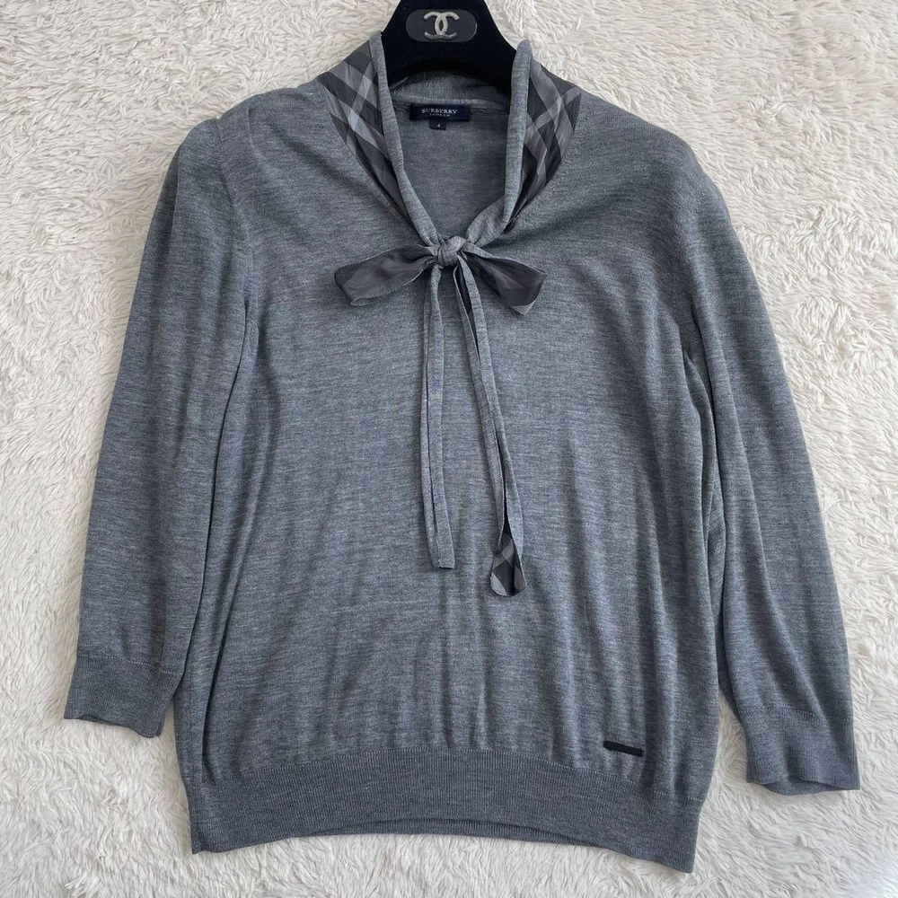 Burberry Bowtie Knit Top Nova Check XL Cotton Silk Soft Women's Sweater Key Features **Burburry Cotton Silk Knit Top** - **Brand:** Burberry - **Product Type:** Knit Top - **Model:** Size 4 - **Color:** Gray - **Material:** Cotton Silk - **Size Details:** - Shoulder Width: 39 cm - Bust Width: 45 cm - Sleeve Length: 47.5 cm - Total Length: 59 cm - **Condition:** - Gently used, worn approximately 2-3 times - No noticeable damage or stains - Overall in great condition, ready for continued wear - **Features:** - Lightweight design suitable for layering in autumn and spring - Bow tie ribbon with a Nova check pattern on the reverse side for a cute touch **Note:** Please review the seller's profile before purchasing. Additional items shown in photos are not included. Specifications Brand Burberry London Country Japan Product Description Item Title Burberry Bowtie Knit Ribbon Nova Check Xl Cotton Silk Payment Supports managed payments Please pay within 5 days after auction is finished. About Us We are located in Japan. It's our pleasure to make you happy by proposing our recommend item. If you have any questions or request about items, please feel free to ask us. International Buyers - Please Note: -Import duties, taxes, and charges are not included in the item price or shipping charges. These charges are the buyer's responsibility. -Please check with your country's customs office to determine what these additional costs will be prior to bidding/buying. -These charges are normally collected by the delivering freight (shipping) company or when you pick the item up - do not confuse them for additional shipping charges. -We do not mark merchandise values below value or mark items as - gifts - The US and International government regulations prohibit such behavior. Thank you for your understanding.