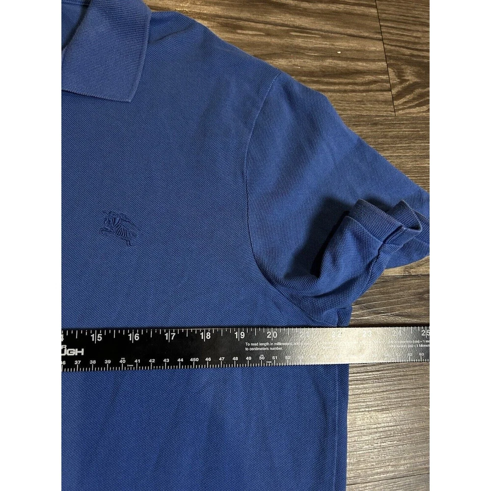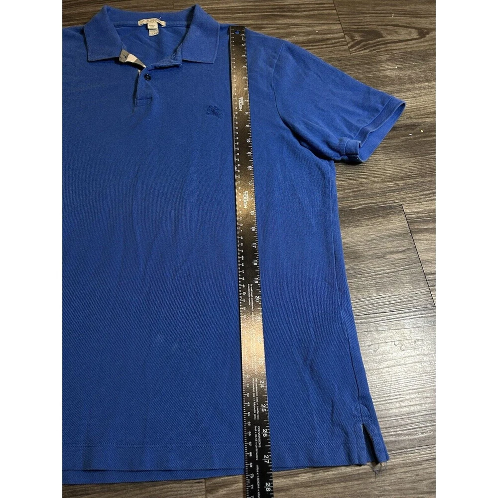 Burberry Brit Mens XL Golf Pique Polo Blue Equestrian Logo Nova Check Plaid Trim. Condition is Pre-owned. Shipped with USPS Ground Advantage.