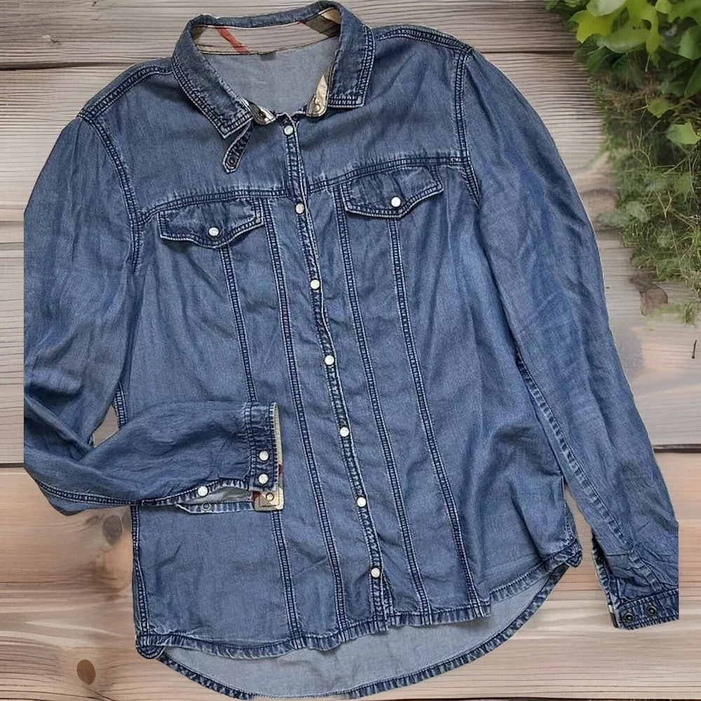 Burberry Brit Women Blue Jeans Shirt Blouse Long Sleeves Size M