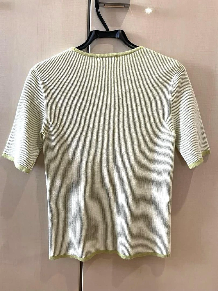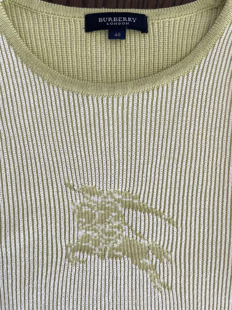 Burberry Green Ribbed Knit Top Size M Lightweight Cotton Summer Wear Key Features **Burberry Short Sleeve Ribbed Knit Top** - **Brand**: Burberry - **Type**: Short Sleeve Ribbed Knit - **Color**: Light Green - **Size**: Suitable for M (Compact fit, ideal for S/M wearers) - **Material**: 100% Cotton - **Features**: - Lightweight summer knit fabric - Stretchable with a soft texture - Worn only 2-3 times, no visible stains or pilling - **Measurements** (approximate): - Shoulder Width: 34 cm - Bust Width: 40 cm - Length: 55 cm Explore more clothing options from various brands in our listings! Specifications Brand Tomorrowland Country Japan Product Description Item Title Burberry Tops Ralph Lauren Baby Beams Payment Supports managed payments Please pay within 5 days after auction is finished. About Us We are located in Japan. It's our pleasure to make you happy by proposing our recommend item. If you have any questions or request about items, please feel free to ask us. International Buyers - Please Note: -Import duties, taxes, and charges are not included in the item price or shipping charges. These charges are the buyer's responsibility. -Please check with your country's customs office to determine what these additional costs will be prior to bidding/buying. -These charges are normally collected by the delivering freight (shipping) company or when you pick the item up - do not confuse them for additional shipping charges. -We do not mark merchandise values below value or mark items as - gifts - The US and International government regulations prohibit such behavior. Thank you for your understanding.