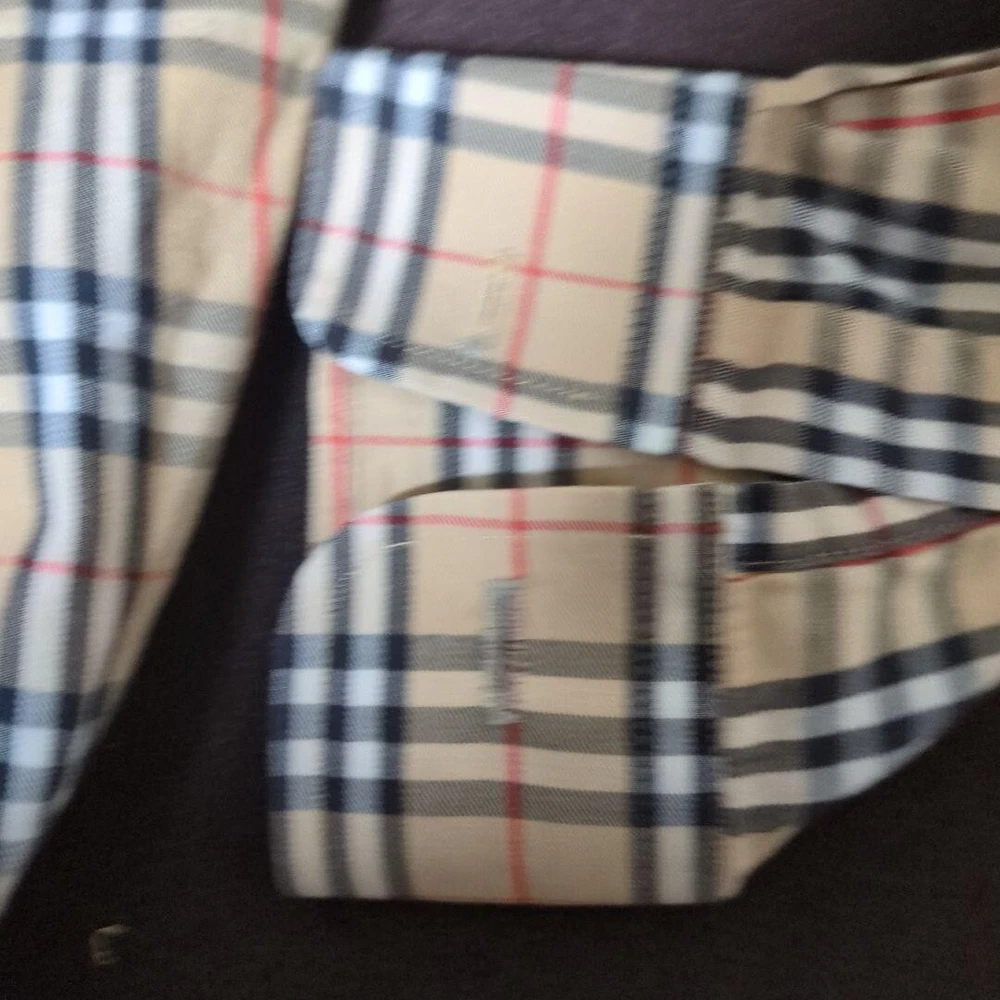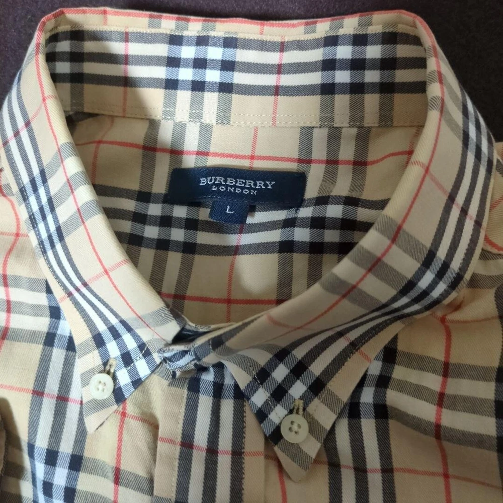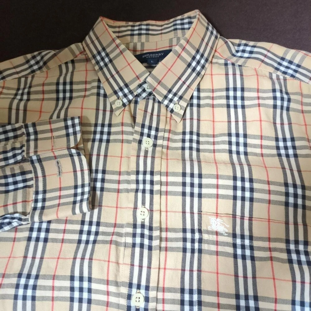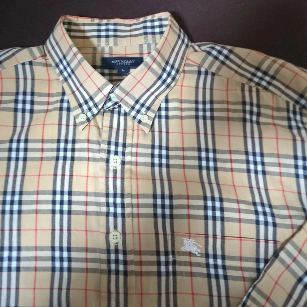 Size Type: Regular Size: L Character: NA Collar Style: Button-Down Color: Beige UPC: Does not apply Model: NA Accents: Button Closure: Button Garment Care: NA Department: Men Chest Size: 48.8 in gtin13: Does not apply Fabric Type: NA Product Line: NA Neckline: Collared Material: Cotton Handmade: No Brand: Burberry London Vintage: No Fit: Slim Type: Button-Up Pattern: Check Features: Pockets Sleeve Length: Long Sleeve MPN: NA Theme: NA Season: Fall, Spring, Winter Occasion: Business, Casual, Travel Personalize: No