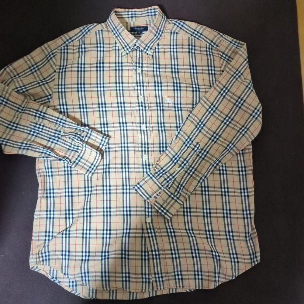 Burberry London BD Shirt Long sleeve Nova Check Beige Cotton Men Size L Used