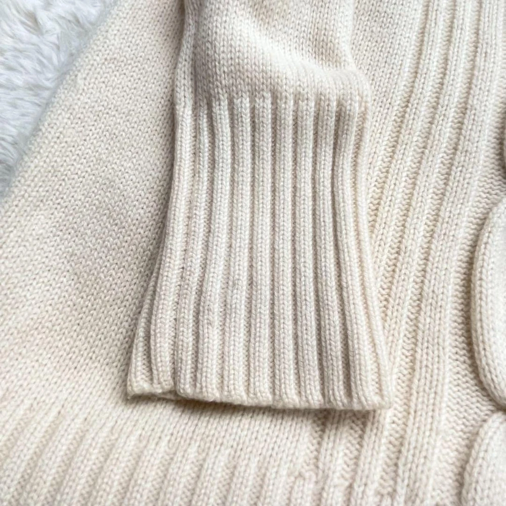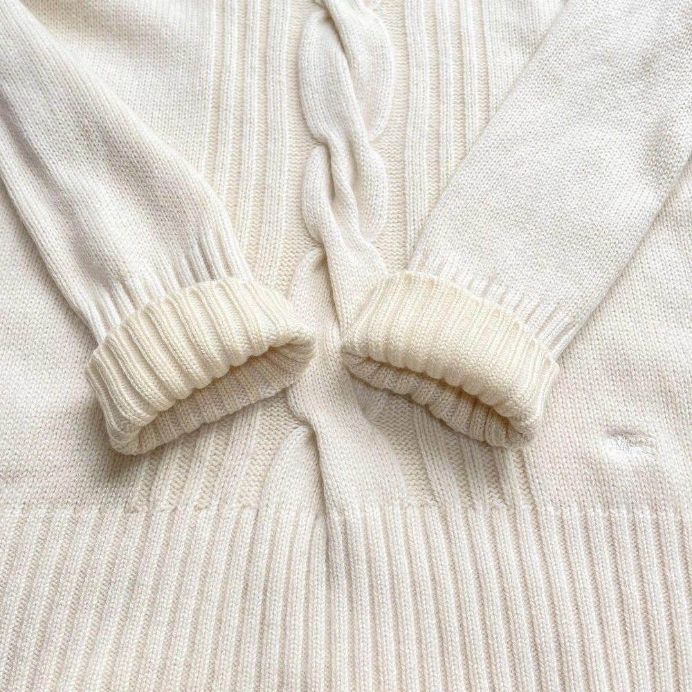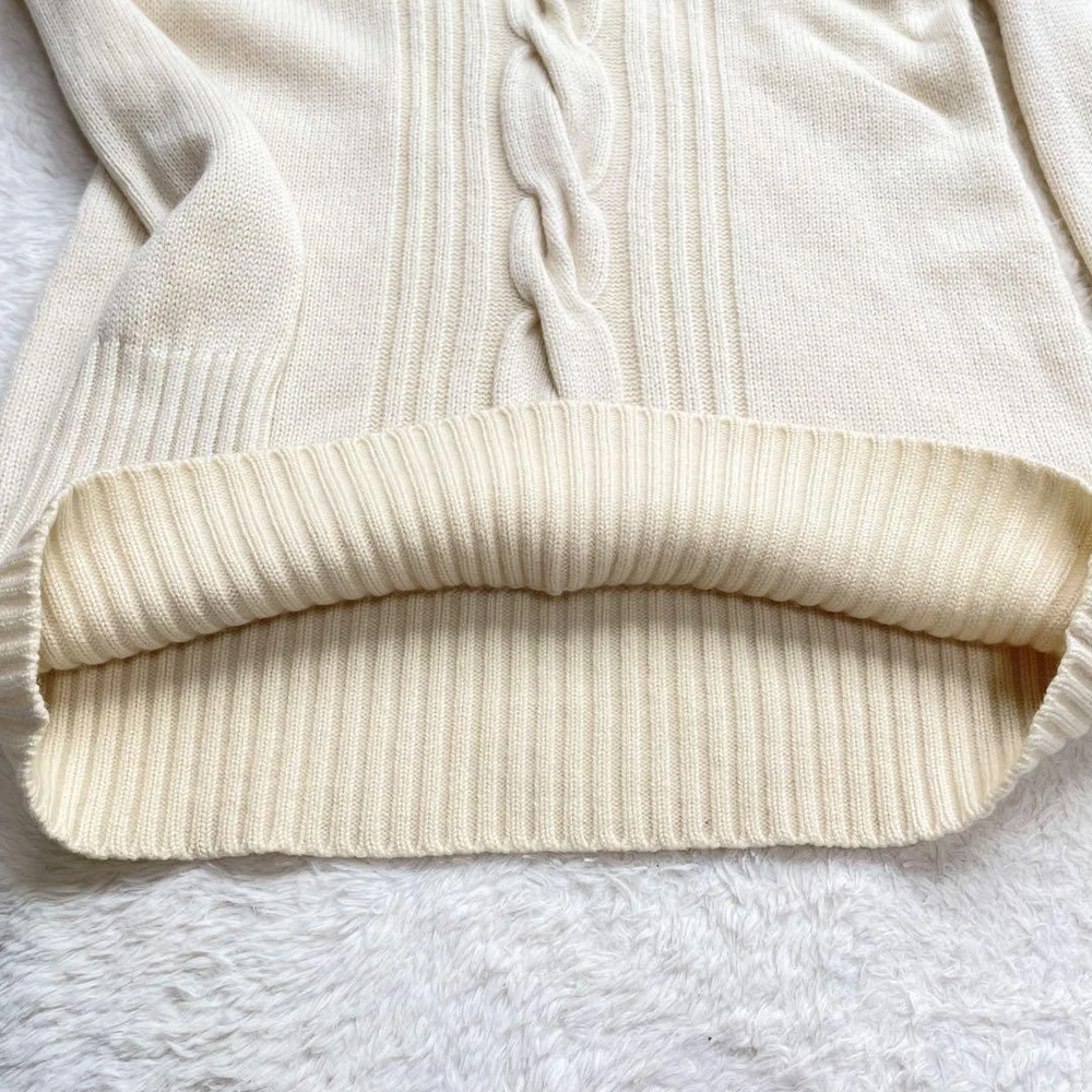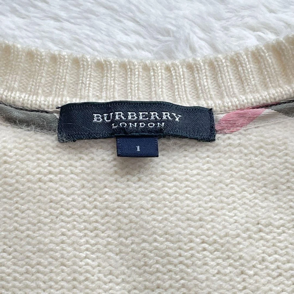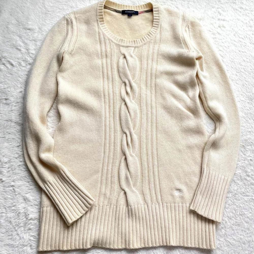 Burberry London Cashmere Blend Cable Knit Sweater Ivory Size M New Key Features **Burberry London Sweater - Center Cable Design** - **Brand:** Burberry London - **Product Type:** Sweater - **Model:** Center Cable - **Color:** Ivory - **Material:** 73% Wool, 27% Cashmere - **Size:** 1 (M) - **Measurements:** - Length: Approximately 65 cm - Shoulder Width: Approximately 35 cm - Chest Width: Approximately 40 cm - Sleeve Length: Approximately 62 cm **Features:** - Soft and fluffy texture - Classic round neck design - Longer sleeves for added comfort **Condition:** - Pre-owned item - In good condition with some minor fraying; please refer to photos for details before purchasing. *Note: This item is sourced from a reputable recycling shop.* Specifications Brand Burberry London Country Japan Product Description Item Title Soft To The Touch Burberry London Cashmere Blend Sweater Cable Knit Hose Embroid Payment Supports managed payments Please pay within 5 days after auction is finished. About Us We are located in Japan. It's our pleasure to make you happy by proposing our recommend item. If you have any questions or request about items, please feel free to ask us. International Buyers - Please Note: -Import duties, taxes, and charges are not included in the item price or shipping charges. These charges are the buyer's responsibility. -Please check with your country's customs office to determine what these additional costs will be prior to bidding/buying. -These charges are normally collected by the delivering freight (shipping) company or when you pick the item up - do not confuse them for additional shipping charges. -We do not mark merchandise values below value or mark items as - gifts - The US and International government regulations prohibit such behavior. Thank you for your understanding.