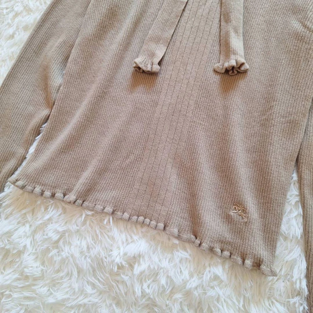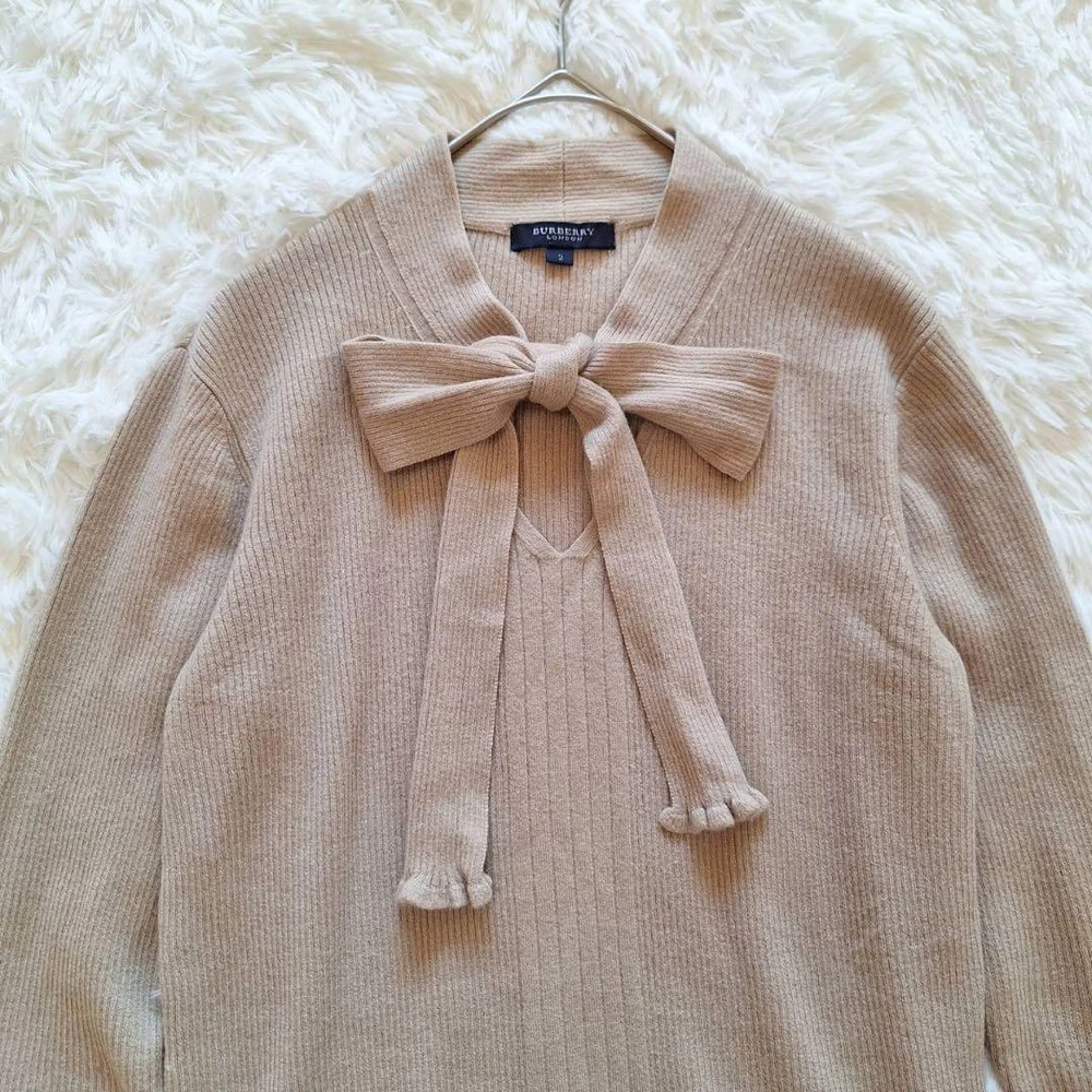 Burberry London Cashmere Bowtie Knit Ruffle Ribbon Blouse Size M New Key Features **BURBERRY LONDON Women's Cashmere Bow Tie Rib Knit Sweater** - **Brand:** BURBERRY LONDON - **Size:** 2 (M) - **Color:** Beige - **Material:** Cashmere - **Measurements:** - Length: Approximately 48 cm - Width: Approximately 44 cm - Sleeve Length: Approximately 54.5 cm - Shoulder Width: Approximately 36.5 cm - **Condition:** Excellent condition with no noticeable damage. This elegant women's long-sleeve cashmere sweater features a stylish bow tie design and ribbed knit texture, making it a perfect addition to your wardrobe. Ideal for both casual and formal occasions, this piece is beautifully crafted and well-maintained. Please note that measurements are taken flat and may have slight variations. Colors may differ slightly due to lighting during photography. Specifications Brand No Brand Country Japan Product Description Item Title Burberry London Cashmere 100 Bowtie Knit Ruffle Ribbon Payment Supports managed payments Please pay within 5 days after auction is finished. About Us We are located in Japan. It's our pleasure to make you happy by proposing our recommend item. If you have any questions or request about items, please feel free to ask us. International Buyers - Please Note: -Import duties, taxes, and charges are not included in the item price or shipping charges. These charges are the buyer's responsibility. -Please check with your country's customs office to determine what these additional costs will be prior to bidding/buying. -These charges are normally collected by the delivering freight (shipping) company or when you pick the item up - do not confuse them for additional shipping charges. -We do not mark merchandise values below value or mark items as - gifts - The US and International government regulations prohibit such behavior. Thank you for your understanding.