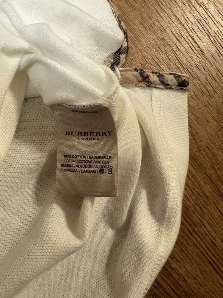 The Burberry London White Polo Shirt is a classic and stylish men's garment perfect for casual occasions. Made of comfortable cotton knit fabric, this short sleeve polo features a collared neckline with a button closure. The iconic Burberry logo accents this solid white shirt, which is suitable for all seasons and can be machine washed for easy care. Perfect for summer, fall, and spring, this Burberry polo exudes designer quality with a regular fit, making it a versatile and timeless addition to any wardrobe.