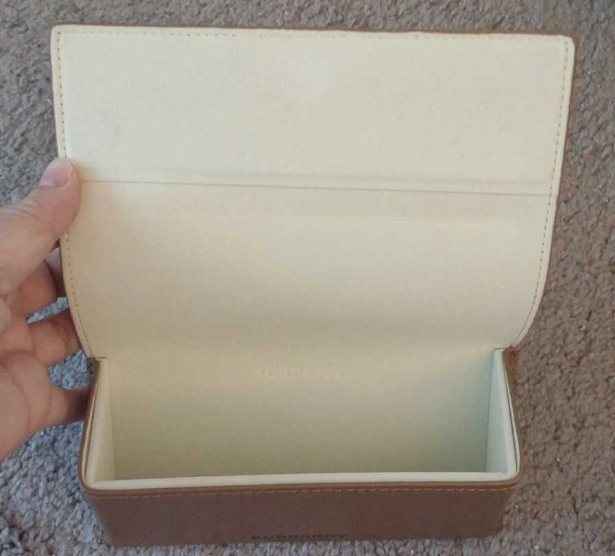 Burberry London England-Camel Brown Flip Top -Eyeglass-Sunglass Case. Pre-owned but in excellent condition. Off white felt lining. Camel brown exterior. Measures 7" x 3 1/2" x 3 1/2". Smoke free home. Please message with any questions.