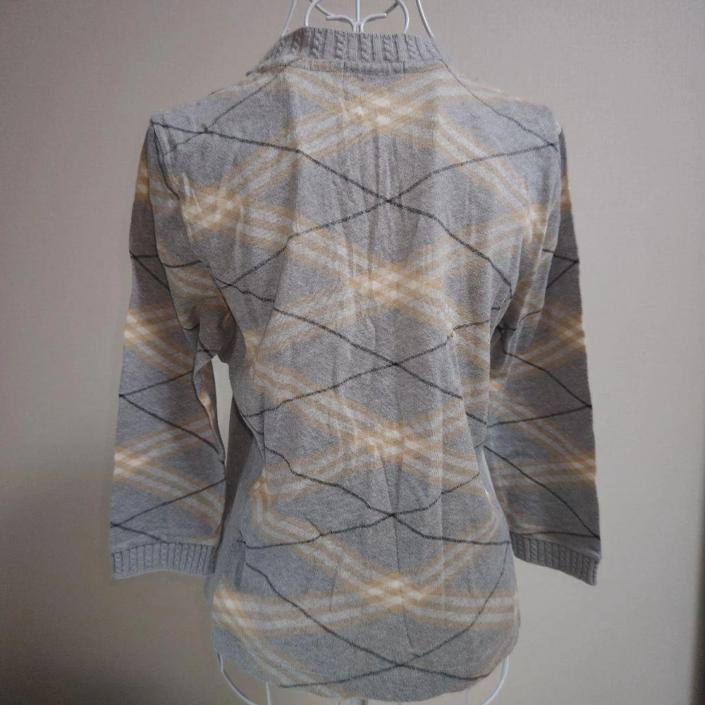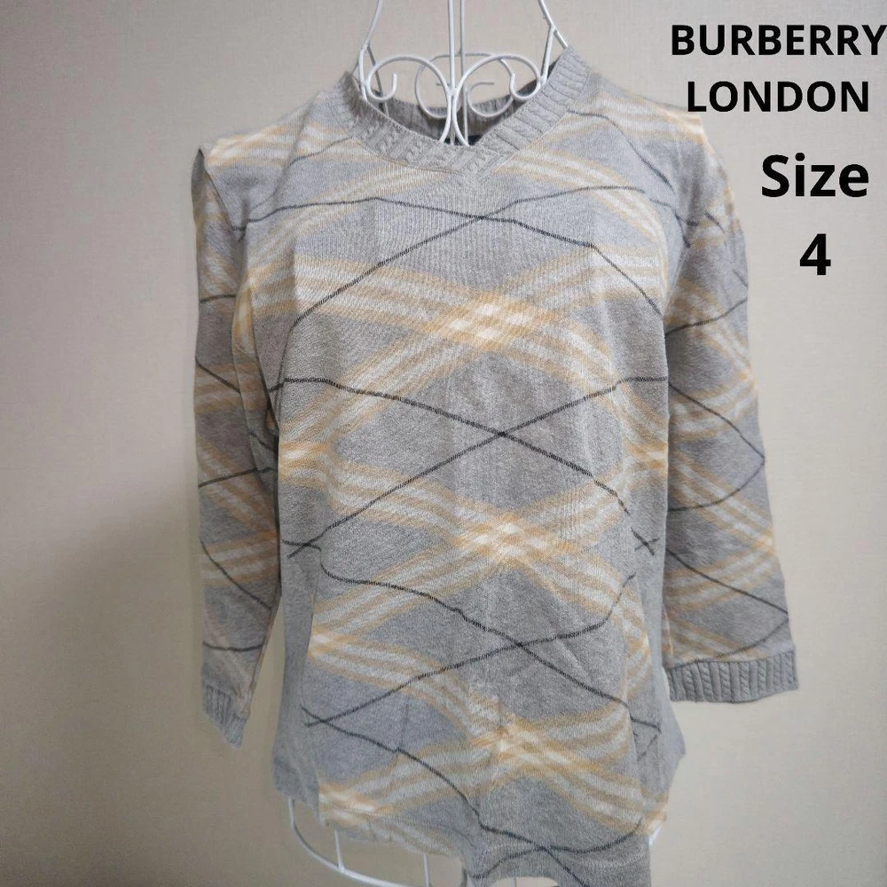 Burberry London Gray Black White Sweater Size 4 Stylish Design New Key Features **Burberry London Gray Sweater** - **Brand**: Burberry London - **Product Type**: Sweater - **Size**: 4 - **Color**: Gray - **Material**: - Main: 100% Cotton - Side Panels: 95% Cotton, 5% Polyurethane - Collar and Cuffs: 93% Cotton, 5% Nylon, 2% Polyurethane - **Dimensions**: - Shoulder Width: 39 cm - Chest Width: 49 cm - Length: 49 cm - Sleeve Length: 44 cm - **Condition**: - Gently used with no noticeable stains or fraying. Please understand this is a pre-owned item. - **Design**: Stylish and versatile, suitable for casual occasions. Features a V-neck and check pattern. - **Seasonality**: Ideal for spring, autumn, and winter Specifications Brand Burberry London Country Japan Product Description Item Title Stylish Burberry London Gray Black White Sweater Size 4 Payment Supports managed payments Please pay within 5 days after auction is finished. About Us We are located in Japan. It's our pleasure to make you happy by proposing our recommend item. If you have any questions or request about items, please feel free to ask us. International Buyers - Please Note: -Import duties, taxes, and charges are not included in the item price or shipping charges. These charges are the buyer's responsibility. -Please check with your country's customs office to determine what these additional costs will be prior to bidding/buying. -These charges are normally collected by the delivering freight (shipping) company or when you pick the item up - do not confuse them for additional shipping charges. -We do not mark merchandise values below value or mark items as - gifts - The US and International government regulations prohibit such behavior. Thank you for your understanding.