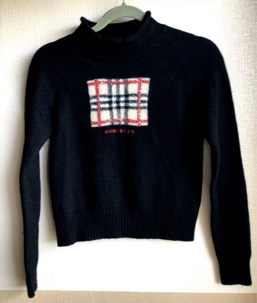 Burberry London Kids Sweater Nova Check Black Square Flag Design New Key Features **Burberry London Sweater** - **Brand:** Burberry - **Product Type:** Sweater - **Model:** Nova Check Square Flag Design - **Color:** Black with Burberry Check in the center - **Size:** 160 (suitable for sizes 140-150 as well) - **Material:** 100% Wool - **Condition:** Used; minor pilling present, easily removable. - **Design Features:** - Red "BURBERRY" lettering at the bottom - Versatile design suitable for both girls and boys - Stretch is minimal, fits like a size S/M - **Personal Note:** This sweater has a unique square flag design, considered cuter than other heart-shaped versions. Suitable for a wide age range. This item is being sold as-is, with no special cleaning done. Specifications Brand Burberry Country Japan Product Description Item Title Burberry London 160 Sweater Kids Payment Supports managed payments Please pay within 5 days after auction is finished. About Us We are located in Japan. It's our pleasure to make you happy by proposing our recommend item. If you have any questions or request about items, please feel free to ask us. International Buyers - Please Note: -Import duties, taxes, and charges are not included in the item price or shipping charges. These charges are the buyer's responsibility. -Please check with your country's customs office to determine what these additional costs will be prior to bidding/buying. -These charges are normally collected by the delivering freight (shipping) company or when you pick the item up - do not confuse them for additional shipping charges. -We do not mark merchandise values below value or mark items as - gifts - The US and International government regulations prohibit such behavior. Thank you for your understanding.