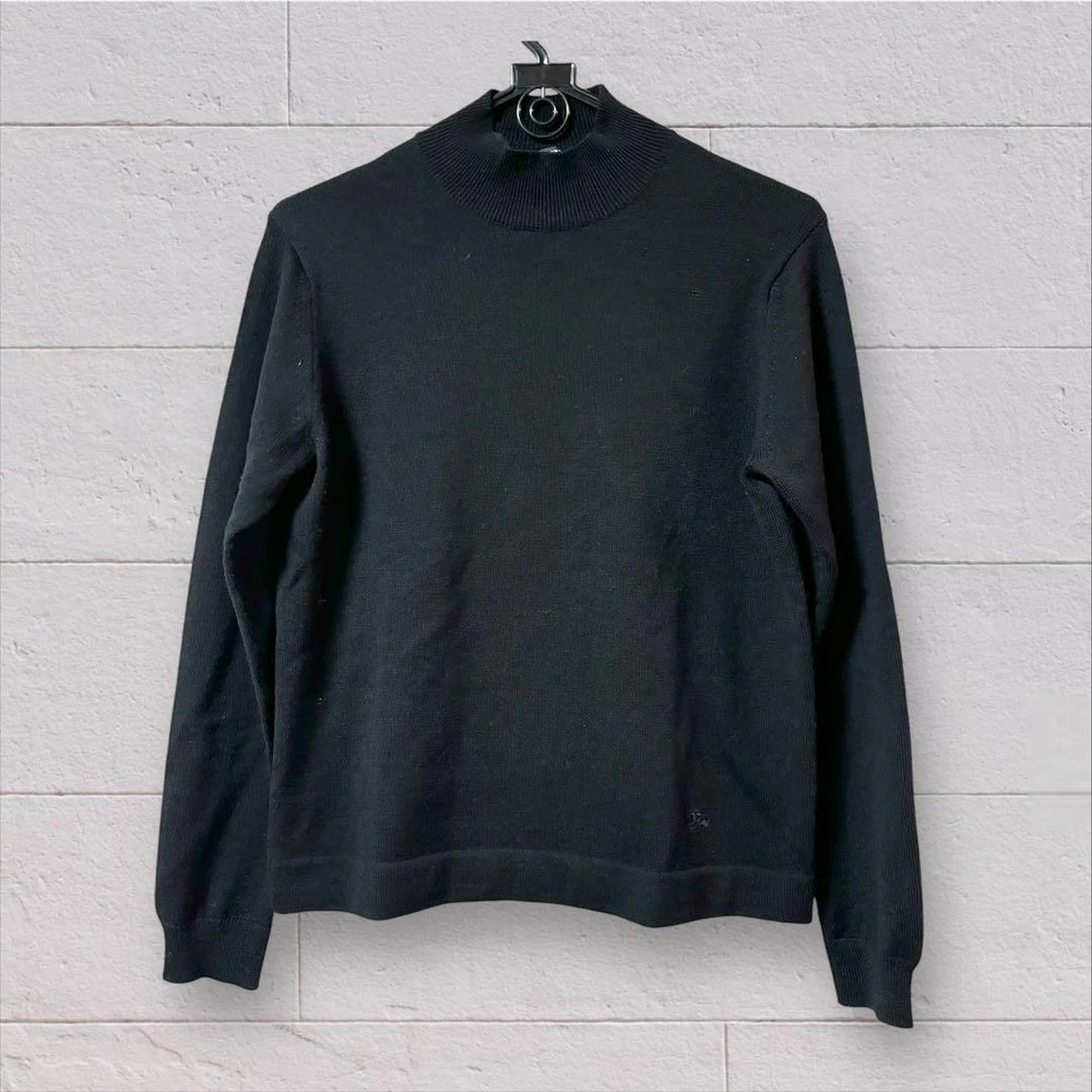 Burberry London Men's Knit Turtleneck Sweater, Horse Logo, Size M, Used Key Features **Burberry London Knit Turtleneck Sweater** - **Brand**: Burberry London - **Product Type**: Long Sleeve Knit Turtleneck Sweater - **Model**: Horse Logo Embroidered - **Size**: M (Size 2) - **Color**: Black **Detailed Features**: - **Material**: 100% Wool - **Measurements** (approx.): - Shoulder Width: 36 cm - Chest Width: 48 cm - Length: 64 cm - Sleeve Length: 58.5 cm - **Condition**: Gently used, no scratches or stains. Please note this is a pre-owned item. This elegant black turtleneck features a subtle horse logo embroidery on the lower left side, making it a sophisticated addition to your wardrobe. It has been cleaned and is ready for wear. Please inquire about any specific concerns before purchasing. Specifications Brand Burberry London Country Japan Product Description Item Title Burberry London Long Sleeve Knit Turtleneck Payment Supports managed payments Please pay within 5 days after auction is finished. About Us We are located in Japan. It's our pleasure to make you happy by proposing our recommend item. If you have any questions or request about items, please feel free to ask us. International Buyers - Please Note: -Import duties, taxes, and charges are not included in the item price or shipping charges. These charges are the buyer's responsibility. -Please check with your country's customs office to determine what these additional costs will be prior to bidding/buying. -These charges are normally collected by the delivering freight (shipping) company or when you pick the item up - do not confuse them for additional shipping charges. -We do not mark merchandise values below value or mark items as - gifts - The US and International government regulations prohibit such behavior. Thank you for your understanding.