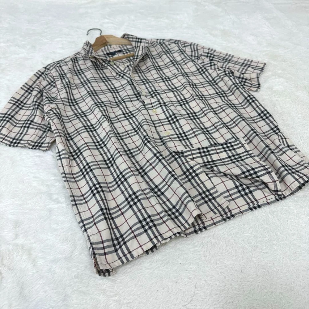 Burberry London Nova Check Short Sleeve Shirt Beige Pocket Men Size L Used