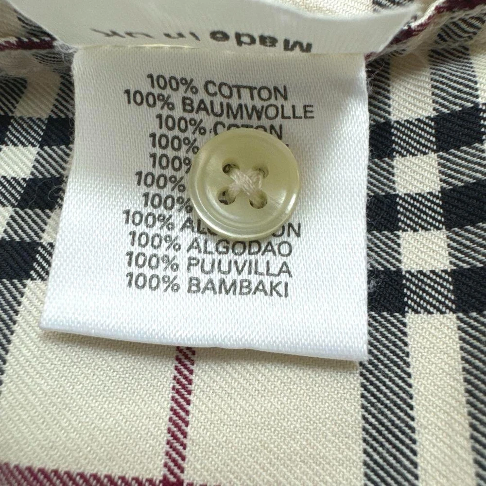 Product Line: NA Character: NA Size: L Collar Style: Button-Down gtin13: Does not apply Color: Beige Material: NA Neckline: Collared Model: NA Garment Care: NA Occasion: Business, Casual, Travel Features: Pockets Sleeve Length: Short Sleeve Fit: Slim UPC: Does not apply Accents: Button Personalize: No MPN: NA Chest Size: 43.3 in Department: Men Theme: NA Vintage: No Season: Fall, Spring, Summer Size Type: Regular Fabric Type: NA Handmade: No Brand: Burberry London Type: Button-Up Pattern: Check Closure: Button