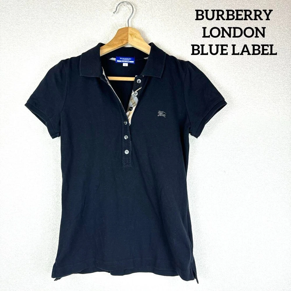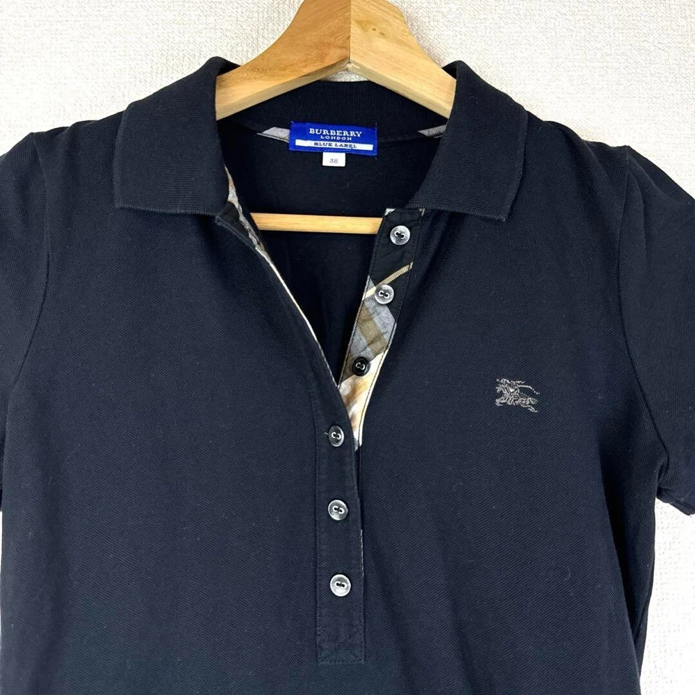 Burberry London Polo shirt Short sleeve Logo Check Black Women Size 38 Used