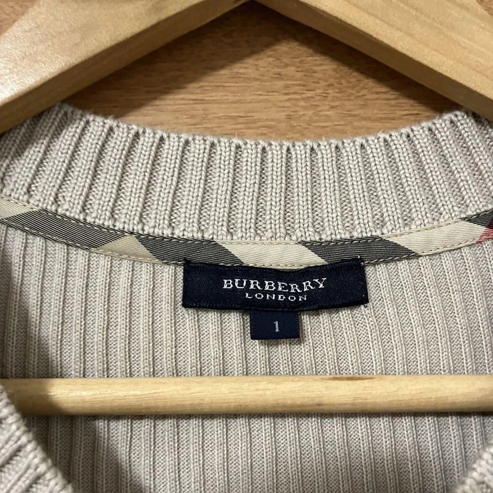 Burberry London Ribbed Knit Sweater, Khaki Beige, Lace-Up Design, New Key Features **BURBERRY LONDON Long Sleeve Knit Sweater** - **Brand:** BURBERRY LONDON - **Product Type:** Long Sleeve Knit Sweater - **Color:** Khaki Beige - **Material:** 90% Cotton, 8% Nylon, 2% Polyurethane - **Size:** Marked size 1 (Actual measurements: Width 45cm, Length 60cm) - **Design Features:** - Unique ribbed design - Stylish lace-up and cord detail at the chest - Embroidered horsemark at the hem - Nova check pattern piping on the inner neckline - **Condition:** - Light signs of use, but no notable damage - Stored at home; not suitable for those seeking perfection This sweater is perfect for fans of Y2K and grunge fairy fashion. Specifications Brand Burberry London Country Japan Product Description Item Title Nice Design Burberry London Ribbed Knit Sweater Payment Supports managed payments Please pay within 5 days after auction is finished. About Us We are located in Japan. It's our pleasure to make you happy by proposing our recommend item. If you have any questions or request about items, please feel free to ask us. International Buyers - Please Note: -Import duties, taxes, and charges are not included in the item price or shipping charges. These charges are the buyer's responsibility. -Please check with your country's customs office to determine what these additional costs will be prior to bidding/buying. -These charges are normally collected by the delivering freight (shipping) company or when you pick the item up - do not confuse them for additional shipping charges. -We do not mark merchandise values below value or mark items as - gifts - The US and International government regulations prohibit such behavior. Thank you for your understanding.